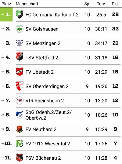 Wenngleich es als sehr ambitioniertes Vorhaben gilt, hat unser Team in der Kreisklasse C1 Platz 4 und die damit Qualifikation für die nächstjährige B-Klasse noch nicht abgeschrieben. 6 Punkte beträgt der Rückstand auf den Vierten TSV Stettfeld II, den man ja aktuell hat schlagen können, ebenso wie zuvor auch den 6ten SV Oberderdingen II und den 7ten VfR Rheinsheim II. Ausgerechnet gegen die nach unserer Mannschaft rangierenden Gegner FV Neuthardt II, FV Wiesental II und FSV Büchenau II hat man dagegen nur einen einzigen Punkt holen können. Kann man dies in der Rückrunde zum Positiven wenden und die Vorrundensiege wiederholen, könnte tatsächlich noch etwas gehen.