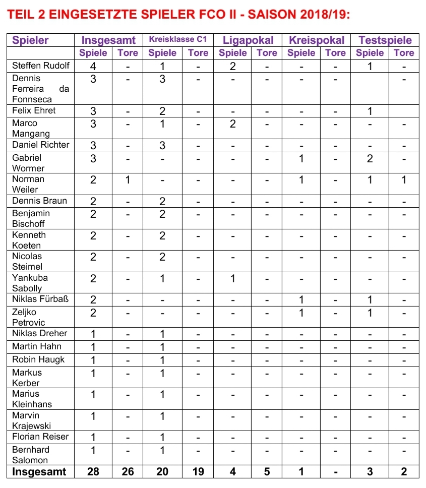 Nach dem kurzfristigen Rücktritt von FCO-Coach Markus Wagner musste vor Saisonbeginn 2018/19 eine neue Lösung gefunden werden. Als Interimsspielertrainer sprang zunächst unser Spielausschussmitglied Jan Bayer ein, ehe später der bisherige Coach der SG Zeutern/Oberöwisheim II, Benjamin Trautwein (SV Zeutern), das Ruder übernahm. Unterstützt wurde er von Markus Zimmerer (ebenfalls vom SV Zeutern) als Co-Spielertrainer. Im Winter zog sich Markus Zimmerer wieder auf das reine Spielerdasein zurück, für ihn sprang Steffen Rudolf als künftiger Co-Spielertrainer in die Presche.