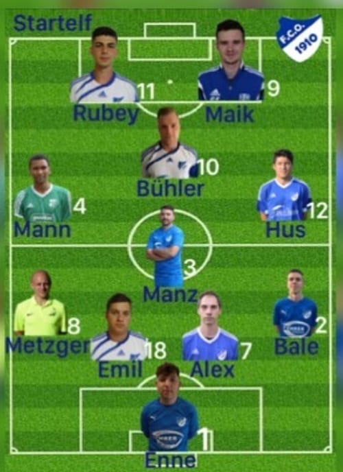 FCO: Enrico Maßfeller, Alexander Zimmermann (61. Nico Scheuring), Patrick Mann, Emil Zimmermann, Hossain Hossaini, Kai Bühler (70. Kevin Schneider), Christian Becker, Dominic Rubey, Maik Weindl (75. Andre Fernandes), Nicolai Manz, Benjamin Metzger.
