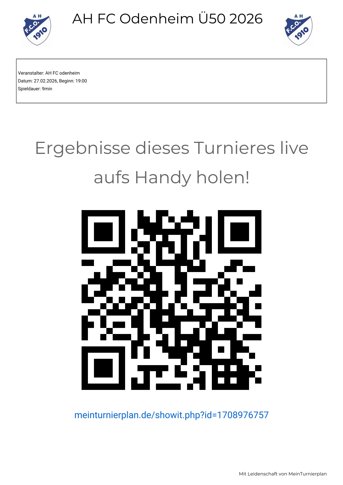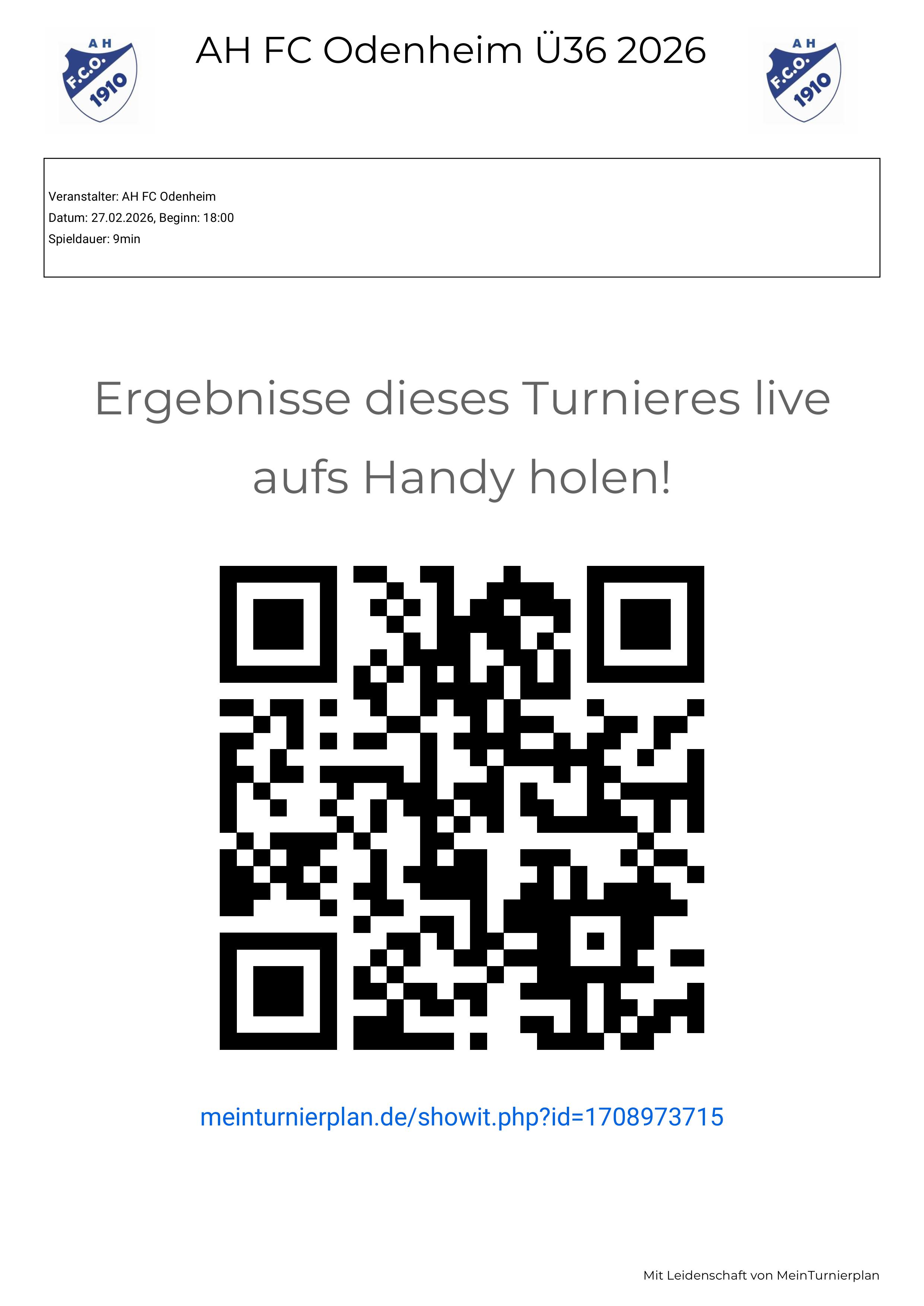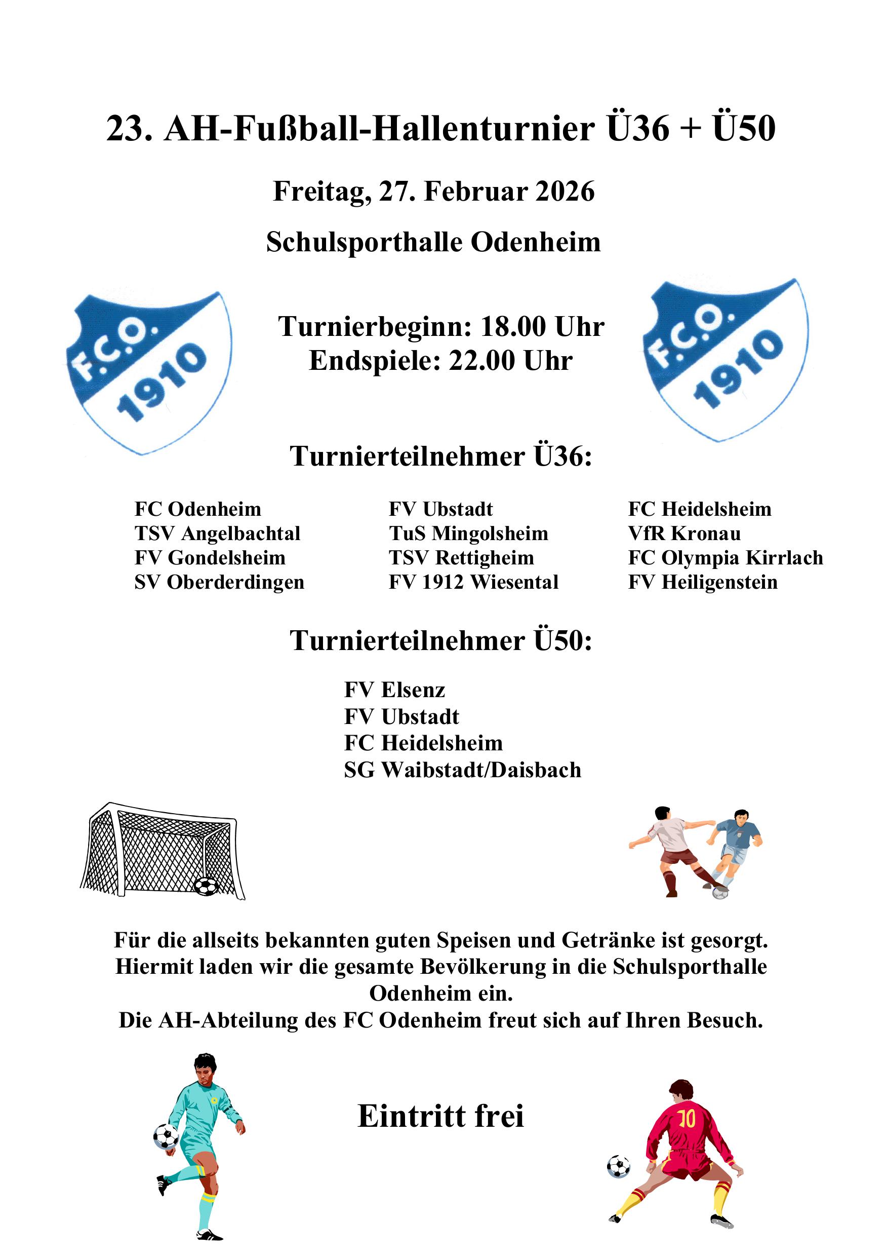 Zum diesjährigen 23. AH-Hallenfußballturnier für Ü36 + Ü50-Mannschaften am Freitag, den 27.02.2026 in der Odenheimer Schulsporthalle laden wir alle interessierten Zuschauer recht herzlich ein.
