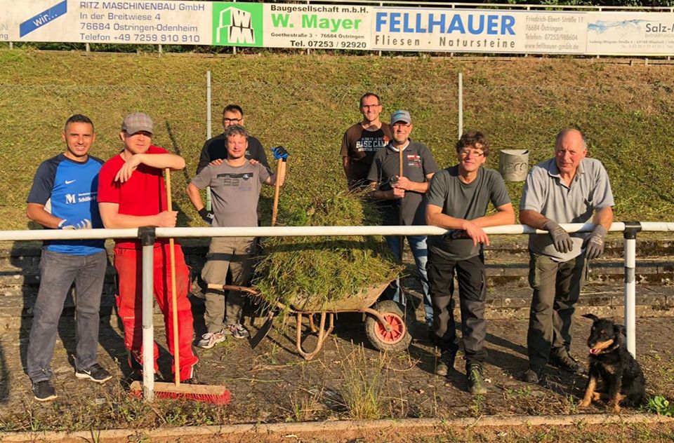 Das weite Rund des Siegfriedstadions hatte eine intensive Pflegeeinheit nötig. Durch die lange Fußballpause hatten Büsche, Gras und jede Menge Unkraut genügend Platz zum Wachsen. Pünktlich zum bevorstehenden Trainingsstart unserer Mannschaften haben sich die Mitglieder unserer AH sich dieses Problems angenommen und mit einem abendlichen Arbeitseinsatz behoben.