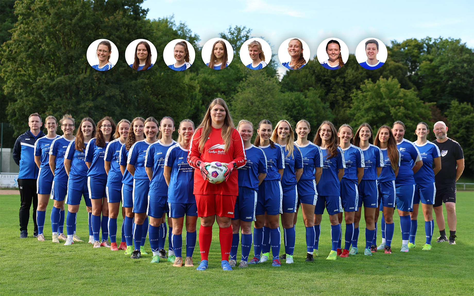 Von links nach rechts: Steffen Ebert (Trainer), Annalena May (Kapitänin), Jacqueline Hertl, Sofie Reiser, Fabienne Fitterer, Jenny Wagner, Milena Würtz, Carolin Adrashazi, Stephanie Schleweis, Laura Schäfer-Herbich, Natalie Walz, Yvonne Zeiher, Melina Stam (Vize-Kapitänin), Sophia Gebl, Amelie Lang, Aline Hertl, Emily Wagner, Fabienne Heß, Tidah Hilzendegen, Amilia Grimm, Jette Bauer, Joachim Reichert (Trainer)