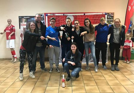Ein großer Erfolg war dagegen unserer Torhüterin Ricarda Weser vergönnt: aus dem Kreis von 14 Turniertorhüterinnen wurde sie von der Turnierleitung zur besten Keeperin ausgezeichnet und mit einer Glastrophäe geehrt. Herzlichen Glückwunsch Ricarda … und weiter so! Die ebenfalls überreichen Sektflaschen konnten unsere Spielerinnen dagegen an diesem Abend nicht mehr gleich köpfen – die vorabendliche/-nächtliche Winterfeier ließ grüßen ;-)