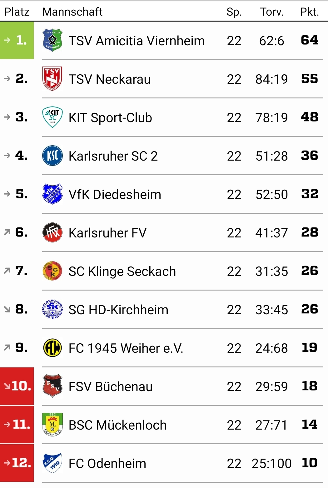 Schließlich stieg im Übrigen Waghäusel auch noch aus der Oberliga ab, sodass es zu drei Verbandsligaabsteigern kam. Neben unserem FCO waren dies zunächst rein auf dem Papier der BSV Mückenloch und doch noch der FSV Büchenau, der am letzten Spieltag zum ersten Mal seit 4 Spielen doch nochmals verlor, während Weiher nach zuvor 5 Niederlagen in Folge ein abschließender Sieg gelang und Büchenau damit doch nochmals überrundete. Inzwischen wurde bekannt, dass der FC Weiher seine Mannschaft aus der Verbandsliga zurückgezogen hat und dafür Büchenau doch in dieser Liga bleibt. Für uns spielte diese Konstallation keine Rolle mehr, wenngleich angesichts von zwei Niederlagen ausgerechnet gegen Mückenloch und den z.B. beim KFV unglücklich verlorengegangenen 2 Punkten durchaus sogar mehr drin gewesen wäre.