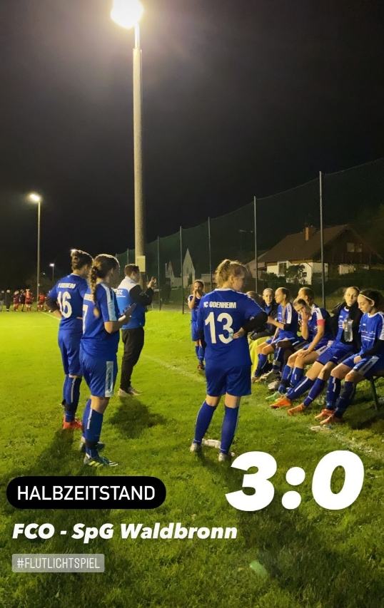 Auf dem bekanntlich holprigen und abschüssigen Odenheimer Trainingsplatz hätte man nicht unbedingt technisch starken Fußball erwarten dürfen. Was unsere FCO-Amazonen dann aber an den Tag legten, war richtig klasse und zum Teil sogar atemberaubend. Zeitweise lief der Ball direkt über vier, fünf, gar sechs Stationen. Die Laufbereitschaft war top, das Zweikampfverhalten vorbildlich und vor allem das kollektive „Füreinandereinstehen“ einer der Schlüssel für eine richtig starke Leistung. Unsere von Beginn an hochmotivierten Damen kamen in Minute 2 bereits zu einem fast ersten Freilauf von Anja Fielenbach aufs Gästetor. Fielenbach ließ sich dabei etwas zu weit nach links abdrängen, holte aber immerhin einen Einwurf in vorderster Front heraus. Jacky Hertl bediente mit selbigem Steffi Schleweis, die von Linksaußen in den Strafraum eindrang, nicht lange fackelte und den Ball aus leicht spitzem Winkel im Tor versenkte. Schleweis´ 2. Saisontreffer und damit ein Top-Start für unsere Elf! In Minute 8 ein weiter Schlag von Kapitänin Annalena May in die Spitze. Hier tauchte Fielenbach plötzlich aus dem Rücken ihrer Gegenspielerin auf, überlief diese und verwandelte vor dem Tor kaltschnäuzig zum 2:0. Die Gäste auch ihrerseits durchaus mit Offensivaktionen, denen unser vielbeiniges Mittelfeld oder unsere sicher stehende Viererkette jedoch jeweils den Zahn zogen. In Minute 13 ein gefährlicher Eckball von J. Hertl, den in der Box gleich mehrere FCO-Spielerinnen nur knapp verpassten. Sechzig Sekunden später ein klasse No-Look-Pass von Schleweis in die Spitze, die aufmerksame Torhüterin war jedoch einen Tick vor Fielenbach am Ball. 20 Minuten waren gespielt, als Emily Wagner auf links Fielenbach einsetzte und diese perfekt für die mitgelaufene J. Hertl auflegte, die aus zentraler Position mit ihrem etwas schwächeren rechten Fuß jedoch übers Tor zielte. In Minute 21 dann auch die erste gute Möglichkeit für die Gäste, als sich deren Spielführerin über unsere rechte Abwehrseite gegen gleich drei FCO-Akteurinnen durchgesetzt hatte und in den Strafraum eingedrungen war. Im letzten Moment war Laura Drexler zur Stelle und konnte den guten Torabschluss zur Ecke blocken. Wichtig, um in dieser Spielphase die 2:0-Führung zu halten! In der 25sten dann das 3:0. J. Hertl wieder mit einer starken Ecke, die zunächst abgewehrt werden konnte. Es folgte ihre zweite gute Flanke, in die Jenny Wagner einsprang und den Ball entschlossen über die Torlinie drückte. In Minute 31 dann leider eine Verletzung bei der Waldbronner Torhüterin. Bei einem Abwehrversuch des rund zwei Meter am Tor vorbeigehenden Balles prallte sie gegen einen Torpfosten und musste fortan passen. Wir hoffen, dass sie sich dabei nicht schwerer verletzt hat. Für sie rückte eine Feldspielerin ins Tor, die Waldbronner Angaben zufolge zuletzt vor fünf Jahren im Tor gestanden war. Es sei vorweggenommen: diese machte ihre Sache richtig gut! Bis kurz vor der Pause nahm unsere Mannschaft etwas das Tempo heraus, hatte Spiel und Gegner aber jederzeit absolut im Griff. Bis auf Minute 45+1, als gegen die hier teils aufgerückte FCO-Defensive wiederum Waldbronns Kapitänin an den Ball kam und sich auch durchsetzen konnte. An unserer aus ihrem Tor geeilten Keeperin Ricarda Weser und an einer Abwehrspielerin vorbei brachte sie das Spielgerät Richtung FCO-Tor. Der Ball rollte auf selbiges zu, klatschte dann aber gegen den linken Pfosten. May war zurückgeeilt und konnte den Ball aus der Gefahrenzone bereinigen. Unstrittig hier Glück für unseren FCO, der kurz darauf mit einer 3:0-Führung in die Pause ging.