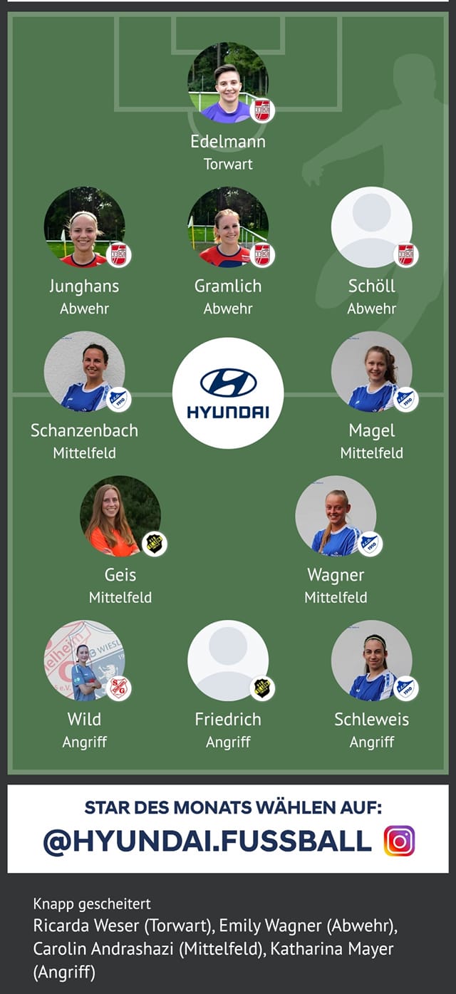 Auf dem Fußballonlineportal FuPa wird je Liga immer die Elf der Woche bestimmt, so auch für die Landesliga Staffel 3, in der unser Damenteam an den Start geht.