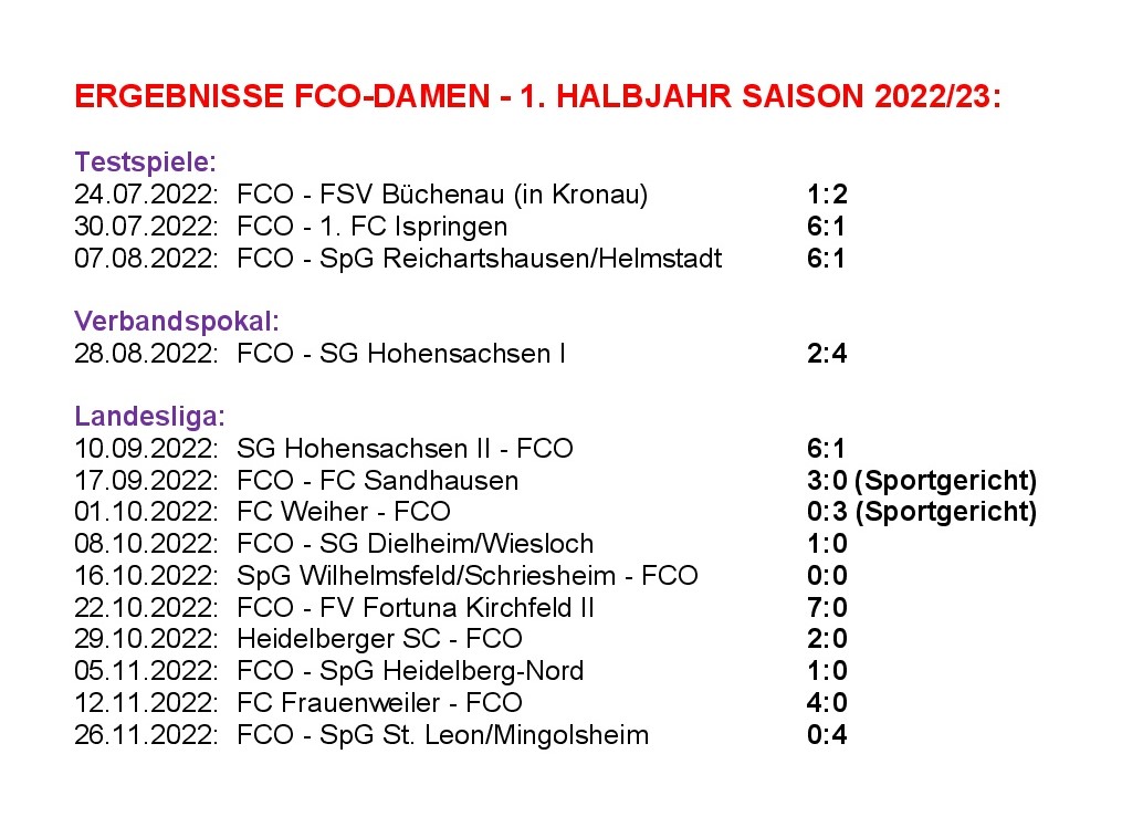 Die einzelnen Spielberichte sind auf unserer Homepage nachzulesen unter https://www.fcodenheim.de/index.php/damen/spielberichte/75-damen-spielberichte-2020-2023.