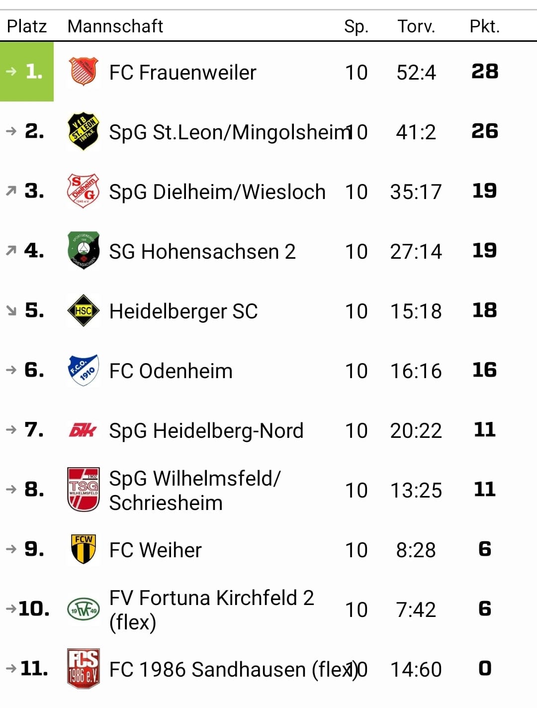 Ein Gesamtblick auf die Landesligavorrundentabelle: Platz 1 und damit die Berechtigung zur Teilnahme an der Aufstiegsrelegation, werden wie bereits in der Vorsaison wieder der FC Frauenweiler und die SpG St. Leon/Mingolsheim unter sich ausmachen. Beide trennten sich am 1. Spieltag voneinander 0:0, danach ließ nur noch St. Leon/Mi. beim 0:0 bei der SpG Heidelberg-Nord Punkte liegen. Frauenweiler damit mit 28 Punkten in Front (Torverhältnis plus 48), vor St. Leon/Mi. mit 26 Zählern (plus 39). Beide werden gleich zu Beginn der Rückrunde, am 04.03.2023 in Frauenweiler aufeinandertreffen, im Falle eines Sieges der Heimmannschaft könnte dies dann bereits eine Art kleine Vorentscheidung sein. Es folgt in der Tabelle das obere Tabellenmittelfeld mit um nur drei Punkte voneinander getrennten vier Teams: 3.) SpG Dielheim/Wiesloch 19 Punkte (plus 18), 4.) SG Hohensachsen II (19, plus 13), 5.) Heidelberger SC (18, minus 3) und 6.) unserem FCO (16, plus/minus 0). Das untere Tabellenmittelfeld besetzen die SpG Heidelberg-Nord (11, minus 2) und die SpG Wilhelmsfeld/Schriesheim (11, minus 12). Auf den Plätzen 9 und 10 der FC Weiher (6, minus 20) und der FV Fortuna Kirchfeld II (11, minus 35). Am Tabellenende steht der FC Sandhausen mit noch 0 Punkten und einem Torverhältnis von minus 46. Die beiden letztgenannten Vereine haben inzwischen für den sogenannten Flex-Betrieb gemeldet und können sich damit bei den Rückrundenspielen dafür entscheiden, im 9-gegen-9 oder gewohnten 11-gegen-11 anzutreten.