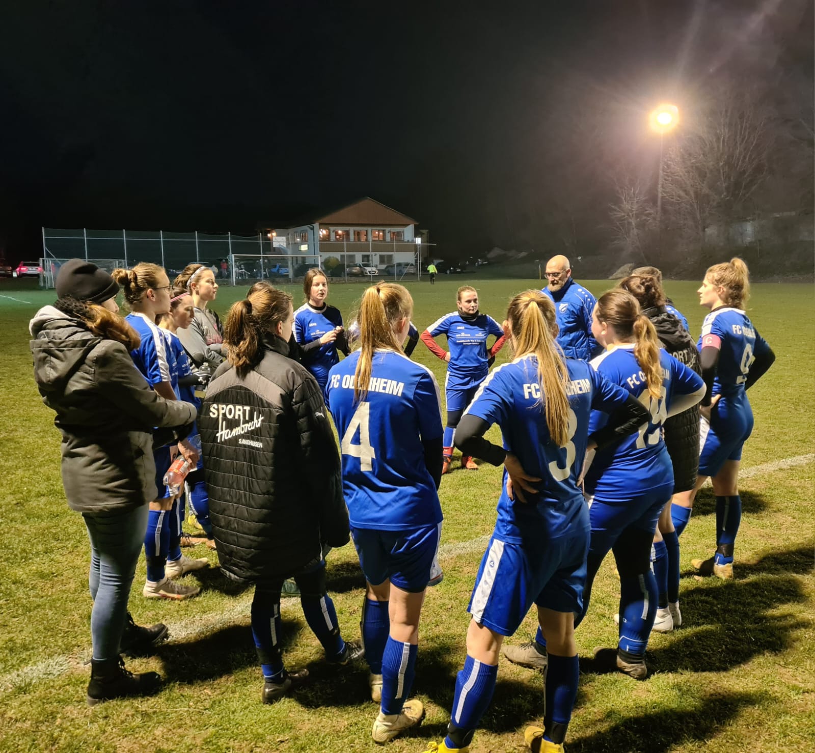 Auf dem ob des auf dem Hauptplatz fehlenden Flutlichts „unteren Trainingsplatz“, zeigten sich alle FCO-Amazonen von Beginn an sehr engagiert und konnten zahlreiche Ballgewinne verzeichnen. Die überraschten Gäste kamen in den ersten 5 Minuten kein einziges Mal über die Mittellinie. Ein erstes offensives Ausrufezeichen setzte Hertl, die nach ihrer schweren Verletzung in der Vorrunde gegen Weiher erstmals seit über 4 Monaten wieder in einem Pflichtspiel auflaufen konnte. Ihr Freistoß von rechts klatschte an den rechten Außenpfosten. Zwei Minuten danach auch die Gäste erstmals in der Offensive und gleich gefährlich. Ein ebenfalls Freistoß wurde vors FCO-Tor getreten, unsere Keeperin Ri. Weser war jedoch per Faustabwehr zur Stelle. Unser Team besaß ein Plus an Ballbesitz und vor allem erfolgreich geführten Zweikämpfen und kam in Minute 11 zur nächsten guten Möglichkeit. Wieder war es ein Freistoß von Hertl, bei dem die Gästetorhüterin schon ihre liebe Mühe hatte, diesen per Fußabwehr zu parieren. Der Ball sprang nach vorne ab, leider war keine FCO-Abnehmerin zur Stelle. Hier sollte man künftig etwas zielgerichteter auf 2. Bälle lauern! In der 14sten dann die 1:0-Führung. Was für ein tolles Tor! Mit starkem Direktspiel über mehrere Stationen gewährte man dem gegnerischen Mittelfeld keinen Zugriff und Schleweis nahm das finale Zuspiel von Hertl auf. Technisch stark zog Steffi auf und ließ der Torhüterin mit einem trockenen, verdeckten Flachschuss ins von der Stürmerin aus gesehen linke Toreck keine Abwehrchance. Der Jubel unserer FCO-Amazonen führte wohl zu einem Moment der Unaufmerksamkeit, sah man sich nach dem direkten Wiederanspiel doch plötzlich einem Freilauf der starken Gästeangreiferin über halbrechts ausgesetzt. Diese zog das Spielgerät links am FCO-Tor vorbei; auch dank Ri. Weser, die geschickt den Winkel verkürzt hatte. In der 19. Minute eine weitere Topaktion unserer Elf, die einen weiteren Treffer mehr als nur verdient gehabt hätte. Schleweis setzte sich stark über rechts durch und flankte gekonnt in die Box. Hier lief Andrashazi perfekt ein und setzte ebenso perfekt und auch noch in Bedrängnis einen Kopfball aufs Tor. Mit einem Zauberreflex bewahrte die Gästetorhüterin ihre Mannschaft vor einem 0:2-Rückstand. Schade, wir hätten es gerade Carolin so sehr gegönnt – dann halt das nächste Mal! 😉 Nach der folgenden Ecke kam Fitterer zum Abschluss. Dieser wäre richtig gefährlich geworden, konnte aber von der vielbeinigen Abwehr der Gastmannschaft gerade noch geblockt werden. Als Zwischenfazit nach 25 Minuten konnte man festhalten, dass die Führung unseres Teams vollauf gerechtfertigt und Hohensachsen mit dem 1:0 noch gut bedient war. Dann aber plötzlich, in Minute 27, wie aus dem Nichts der 1:1-Ausgleich. Ein Pass fand eher glücklich sein Durchkommen durchs Zentrum, waren doch gleich zwei FCO-Spielerinnen schon so gut wie am Ball gewesen. Die Ex-Zweiligaspielerin Buhl war auf und davon und hatte dann auch noch Glück, dass ihr Schuss ins Tor trudelte, nachdem Ri. Weser noch mit einer Hand drangewesen war. Der Ausgleich gab den Gästen mehr Sicherheit und diese besaßen nun zweitweise einen Tick mehr Ballbesitz, konnten das FCO-Tor vorerst aber nicht gefährden. In den letzten rund 10 Minuten des 1. Durchgangs begegneten sich beide Teams auf Augenhöhe. In Minute 37 ein guter Ball aus dem FCO-Mittelfeld in die Spitze. Die Gästetorhüterin zeigte sich aufmerksam und klärte an der Strafraumgrenze kurz vor Fitterer. In der 38sten der 1. FCO-Wechsel: Dorothea Weiss für Ro. Weser, der die Trainer nach langer Fußballpause eine verdiente Auszeit gönnten. Kürz vor der Halbzeitpause dann doch die Hohensachserinnen mit einem Vorstoß, natürlich wieder mit ihrem Stilmittel des langen Balles auf ihre schnelle Stürmerin. Im Verbund bereinigte unserer Viererkette diesen Versuch jedoch vorbildlich.