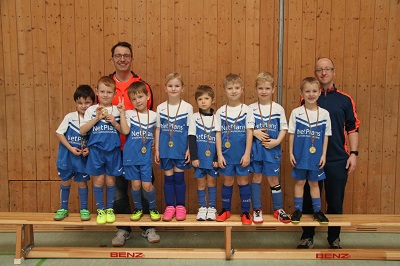 Früh am Samstag, dem 20. Januar begann das erste Turnier der Bambini in diesem Jahr. Wohl noch begeistert von Silvester brannte das Team ein wahres Feuerwerk ab. Gerade Raphael als jüngster bei seinem ersten Turnier hat stark gespielt und keine Furcht vor den größeren Gegnern gezeigt. Ebenfalls ist Lilou zu erwähnen, die als einziges Mädchen ebenfalls eine tolle Leistung abgeliefert hat. Schon das erste Spiel gegen Östringen wurde souverän mit 5:1 gewonnen, wobei Jakob (2x), Paul, Mattis und Maxime die Tore schossen. Nach einer kurzen Pause wurde der TSV Stettfeld mit dem gleichen Ergebnis bezwungen und Mattis, Paul, Sammy, Maxime und Jakob sich in die Torschützenliste eintrugen durften. Im dritten Spiel des Morgens bekam es unser Team mit dem stärksten Gegner zu tun. Die Mannschaft schlug sich tapfer und Johannes bescherte den verdienten Ausgleich zum 1:1 gegen den SV Zeutern 1. Hiernach kam es zur Revanche gegen Stettfeld. Dieses Mal wurde das Spiel mit 3:2 gewonnen und die Torschützen waren Paul und 2x Maxime. Zum Abschluss des Tages wurde im letzten Spiel der SV Zeutern 2 mit 7:1 bezwungen. Mattis (2x), Maxime (2x), Jakob (2x) und Paul erzielten wiederum die Tore.