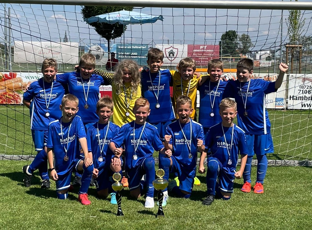 Beim Sportfest des FV Hambrücken gingen zwei stark ersatzgeschwächte Mannschaften an den Start, weshalb die Jungs der E1 bei der E2 aushalfen. Nach der Vorrunde durften die Spieler der E2 bei der ungeschlagenen E1 „Finalluft“ schnuppern und überzeugten hierbei. Erwähnenswert sind die beiden F-Jugendspieler Jakob und Luis, die im Finale jeweils ein Tor zum ungefährdeten Sieg beisteuerten. Letztlich konnten unsere Jungs völlig verdient die Pokale für den 1. und 5. Platz in Empfang nehmen. Super Leistung, weiter so!