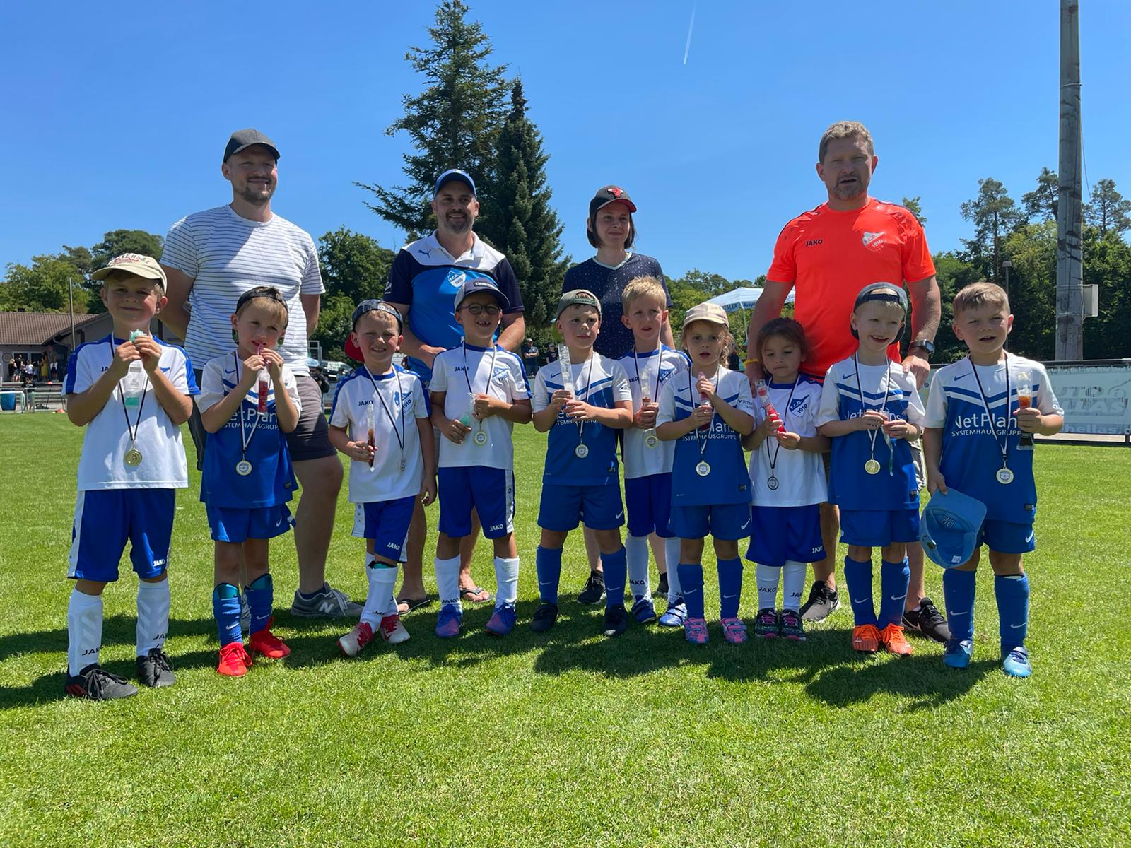 Vor der wohlverdienten Sommerpause ging es für unsere Bambinis am 17. Juli bei super Wetter aufs Sportfest nach Hambrücken. Mit zwei Teams aus unseren Reihen stellten wir uns starken Gegnern aus Forst und Hambrücken. Unsere Mädels und Jungs ließen sich davon allerdings kaum beeindrucken und konnten durch traumhafte Tore von Max, Claas und Ben sowie von Lennard V. und Paul insgesamt drei Siege und ein Unentschieden einfahren. Beim finalen Spiel trafen die beiden Bambini-Teams in einem aufregenden Dorfderby aufeinander, welches freundschaftlich 1:1 endete. Mit Stolz und viel Freude erhielten unsere Jungstars am Ende ihre Medaillen und passend zu diesem heißen Tag noch jeweils ein leckeres Wassereis. (S.M.)