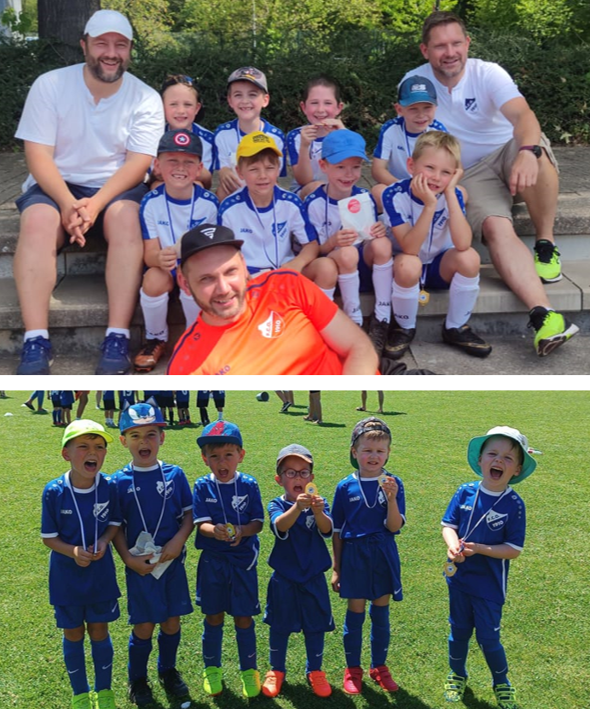 Am Samstag, den 8. Juli, nahmen drei FCO-Bambini-Mannschaften der Jahrgänge 2016, 2017 und 2018 am Schweickert Cup in Wiesloch teil. Trotz der Hitze, mit Temperaturen über 30°C, hatten unsere Kids wieder viel Spaß beim Fußball spielen. Auch wenn gegnerische Mannschaften wie Baiertal, Nußloch, Speyer, Heidelberg und Wiesloch körperlich teils überlegen waren, unsere Bambinis ließen den Kopf nie hängen und konnten richtig gut mithalten. Nach dem Turnier konnten sich die Kinder mit dem Rasensprenger abkühlen und durften anschließend voller Stolz ihre Medaille bei der Siegerehrung entgegennehmen.