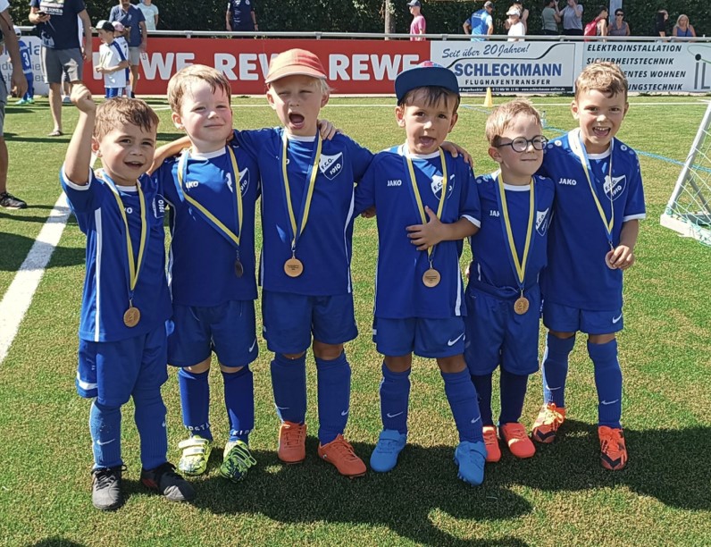 Am 09.09. ging es zum ersten Bambini-Spielfest nach der Sommerpause. Bei hochsommerlichen Temperaturen bestritten wir Spiele gegen Mannschaften aus Rettigheim, Wiesenbach und Balzfeld. Diesmal konnten wir gegen gleichaltrige Bambinis spielen und somit unsere Stärke zeigen. Es konnten 2 von 3 Spielen gewonnen werden. Eine super Teamleistung! Unsere 2018-Bambinis zeigten viel Spielfreude und Ehrgeiz. Am Ende wurden alle mit Medaillen ausgezeichnet. Wir freuen uns auf die weiteren Turniere, wenn alle Bambinis wieder an Bord sein werden. Spieler: Erik, Henri, Jonas, Leo, Louis, Theodor. Spieler/innen im Grundlagenbereich aus Datenschutzgründen ohne Nachnamen veröffentlicht. (S.M.)