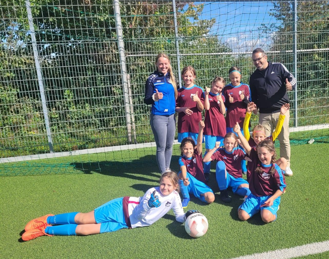 Bei ihrem ersten Spieltag als neuformierte Mannschaft mit mehreren erst frisch aus der F-Jugend entsprungenen Mädchen zeigten unsere vom Trainerduo Jenny Wagner und Sven Präßler gecoachten E-Juniorinnen gleich mal, was in ihnen steckt. In allen 4 Spielen präsentierten sie sich sehr offensivfreudig mit dreimal 4 und einmal 6 geschossenen Toren und auch hinten ließen sie in 2 von 4 Spielen keinen Gegentreffer zu. Unsere starke Keeperin Nina erntete zurecht sogar von den gegnerischen Trainern Lob. Eine richtig gute Leistung aller Spielerinnen, die mit 18:6 Toren im Gepäck zufrieden wieder die knapp 50 km lange Heimreise nach Odenheim antreten konnten. Weiter so!