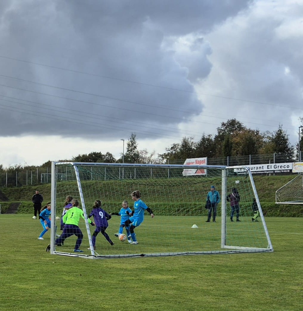 Im ersten Spiel des Tages gegen Mingolsheim ließ das Team bis auf ein, zwei Gelegenheiten, die unsere Torhüterin Isabell allesamt abzuwehren wusste, dem Gegner kaum eine Chance. Unsere Girls brillierten mit gutem Passspiel und mit mannschaftlicher Geschlossenheit und erspielten sich folgerichtig Chance um Chance. Emilia eröffnete den Torreigen mit dem 1:0 und Felia erhöhte kurz darauf auf 2:0. Mit dem 3:0 durch erneut Emilia waren die Weichen endgültig auf Sieg gestellt. Es folgten noch das 4:0 durch Chloe und das 5:0 wiederum durch Felia. Mit dem Schlusspfiff stand ein eindrucksvoller und in dieser Höhe auch verdienter 5:0-Auftaktsieg.