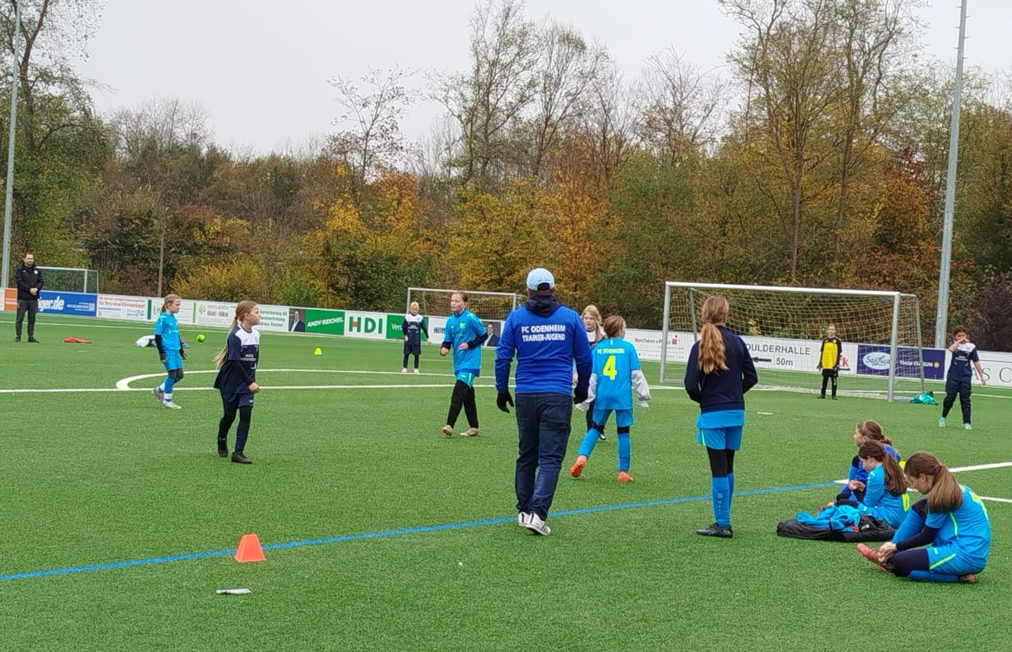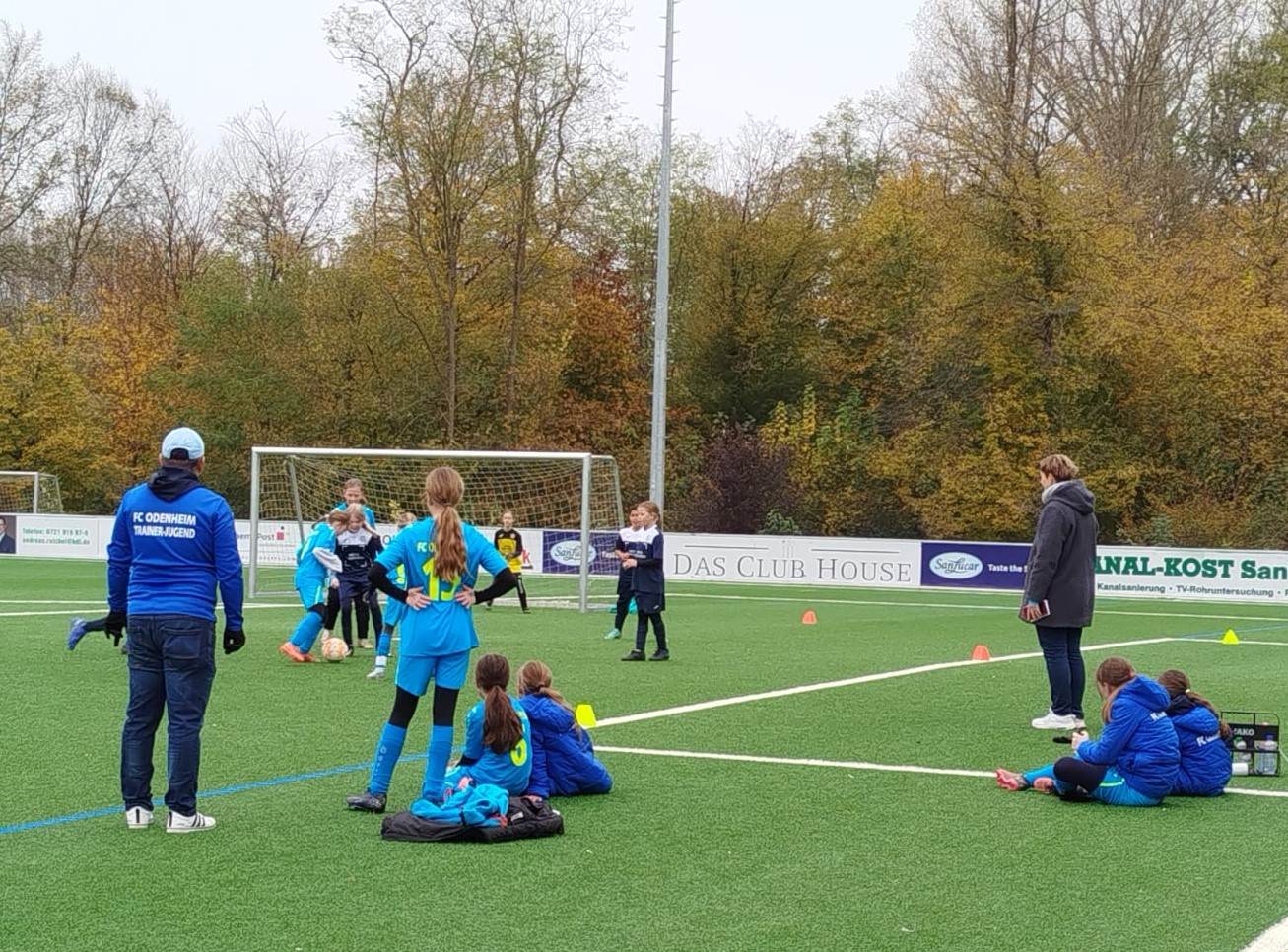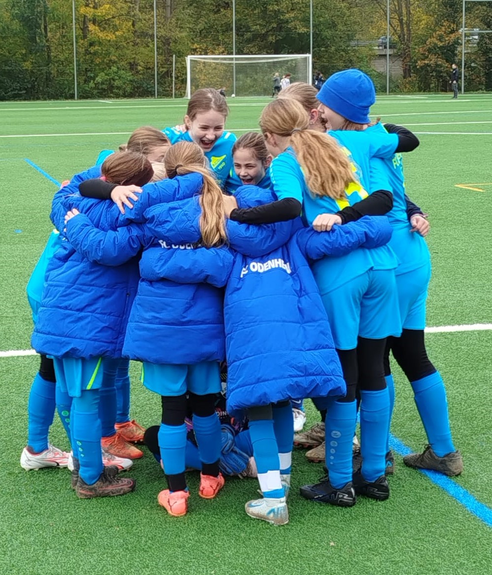 Am Anfang noch nicht ganz wach, mussten unsere FCO-Mädchen im ersten Spiel gegen die in dieser Saison immer stärker werdenden Mädchen von Durlach Aue einem frühen Rückstand hinterherlaufen, konnten aber den Ausgleich erzwingen. Kurz darauf war man wieder einmal etwas zu weit weg von den Gegenspielern, die jede Möglichkeit für Abschlüsse wahrnahmen und so mit einem tollen Schuss auf 2:1 stellten. Gegen Ende der Partie drehten unsere Mädels aber zunehmend auf und kamen durch eine schöne Kombination zum verdienten Ausgleich. Zudem konnten sie immer mehr Chancen für sich verbuchen, die nur vom Pfosten, der Latte oder von der guten Durlacher Torhüterin vereitelt wurden. Wäre das Spiel noch ein wenig länger gegangen, hätten unsere E-Juniorinnen sicherlich noch ein Tor erzielt. So blieb es beim 2:2, unserem 2erst zweiten Unentschieden in dieser Saison. In der Folge waren unsere Mädels dann aber hellwach und gestalteten die beiden darauffolgenden Spiele gegen die Mädchen aus Mingolsheim und wiederum gegen Durlach-Aue (diesmal 3:1) mit der gewohnten Sicherheit und Abschlussstärke. Lediglich im letzten Spiel machten es unsere Spielerinnen noch einmal spannend und ließen nach einer frühen 3:0-Führung Mingolsheim nochmals bis zum 3:3 herankommen. Der Gegner schöpfte nun Mut und spielte vor allem körperlich sehr stark, um noch selbst den Sieg zu erzwingen. Unsere Mädchen hielten jedoch gut dagegen, ließen sich nicht davon beeindrucken und nutzen eine Unachtsamkeit der Gegnerinnen bei einer Ecke eiskalt zum entscheidenden 4:3-Siegtreffer aus.