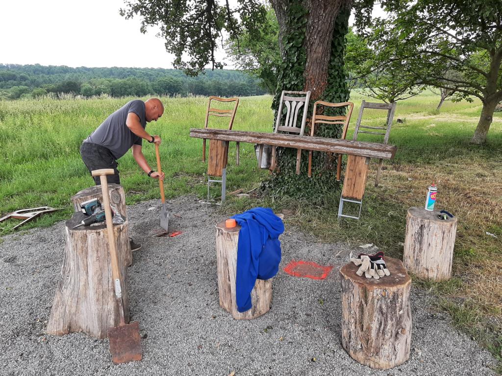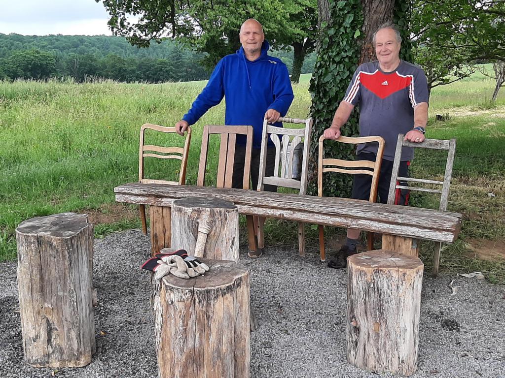 Nachdem die originelle Sitzgelegenheit im oberen Bontal in die Jahre gekommen war, hatten sich kurzer Hand ein paar Mitglieder zusammengefunden, diese neu einbetoniert und gerichtet. Somit soll die Bank auch in nächster Zeit für die vielen Wanderer und Radfahrer als Rastplatz dienen, um den herrlichen Blick über die Weinreben auf unser Odenheim zu genießen. Vielen Dank an Wolfgang, Kurt und Rüdiger.