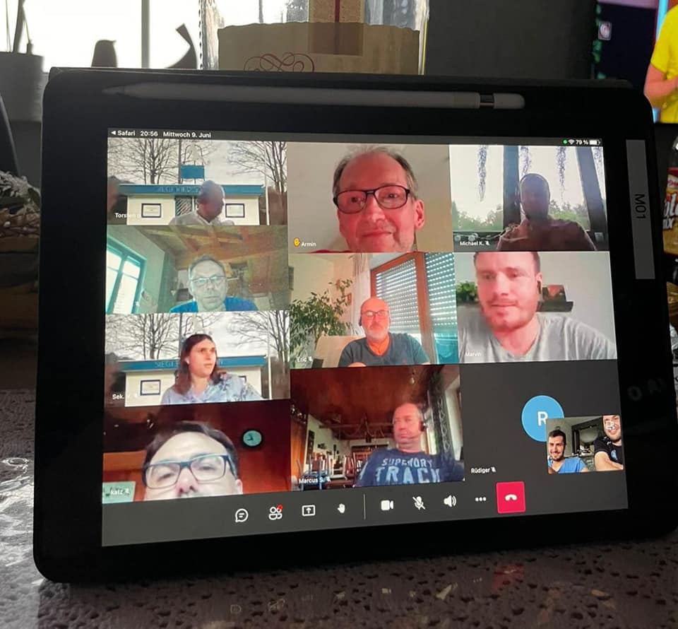 Am Mittwochabend, den 9. Juni, fand insbesondere als Probelauf für die am 25. Juni geplante virtuelle Generalversammlung eine Onlinesitzung der erweiterten Vorstandschaft statt. In knapp 110 Minuten berichteten die Vorstandsmitglieder auch über Neuigkeiten und Themen wie z.B. Clubhaus, Altpapiersammlung u.v.m. Die Teilnehmer*innen beteiligten sich ihrerseits rege mit Beiträgen. Wir danken allen für die Teilnahme. Anbei drei Fotoimpressionen. (E.W.)