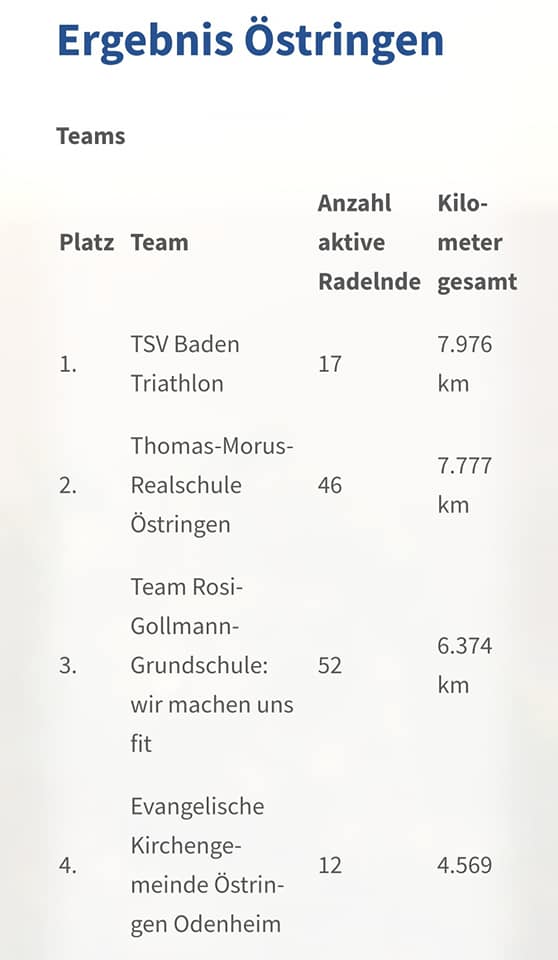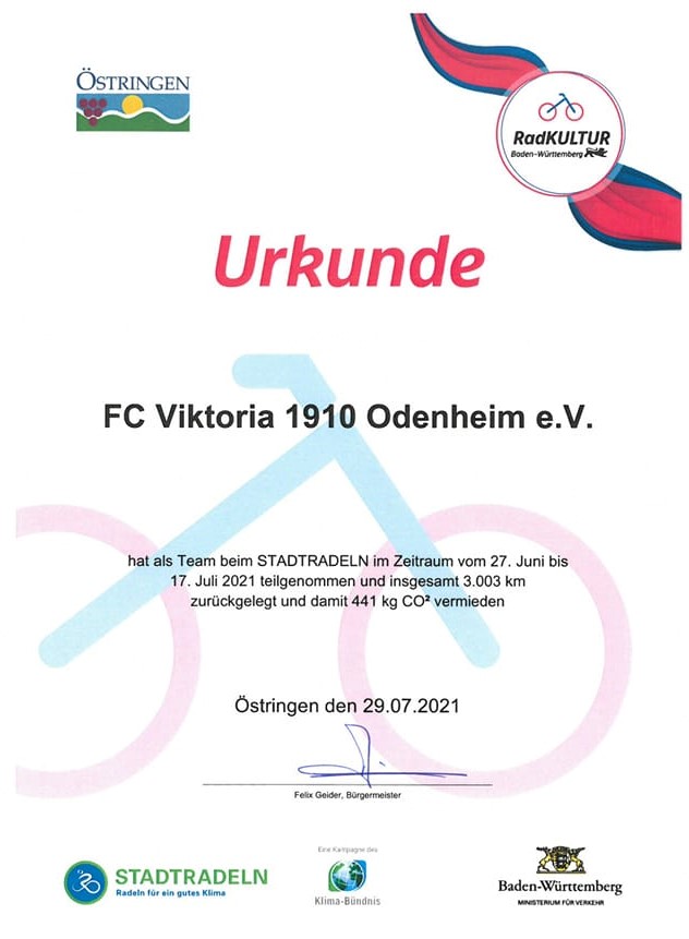 Am 17. Juli endete der dreiwöchige Zeitraum des diesjährigen Stadtradel-Wettbewerbs, an dem erstmals auch die Stadt Östringen teilgenommen hat und wir diese mit einer FC Odenheim-Gruppe unterstützt haben.