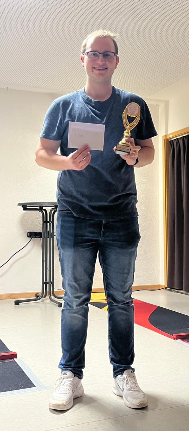Unser Spieler der 2. Herrenmannschaft, Silas Fuchs, hat am 11. März beim Steel-Dart-Turnier (Modus 501-Dopple-Out) des SV Eichelberg unter 32 Teilnehmern/innen einen ganz starken 3. Platz erreicht. Glückwunsch Silas!