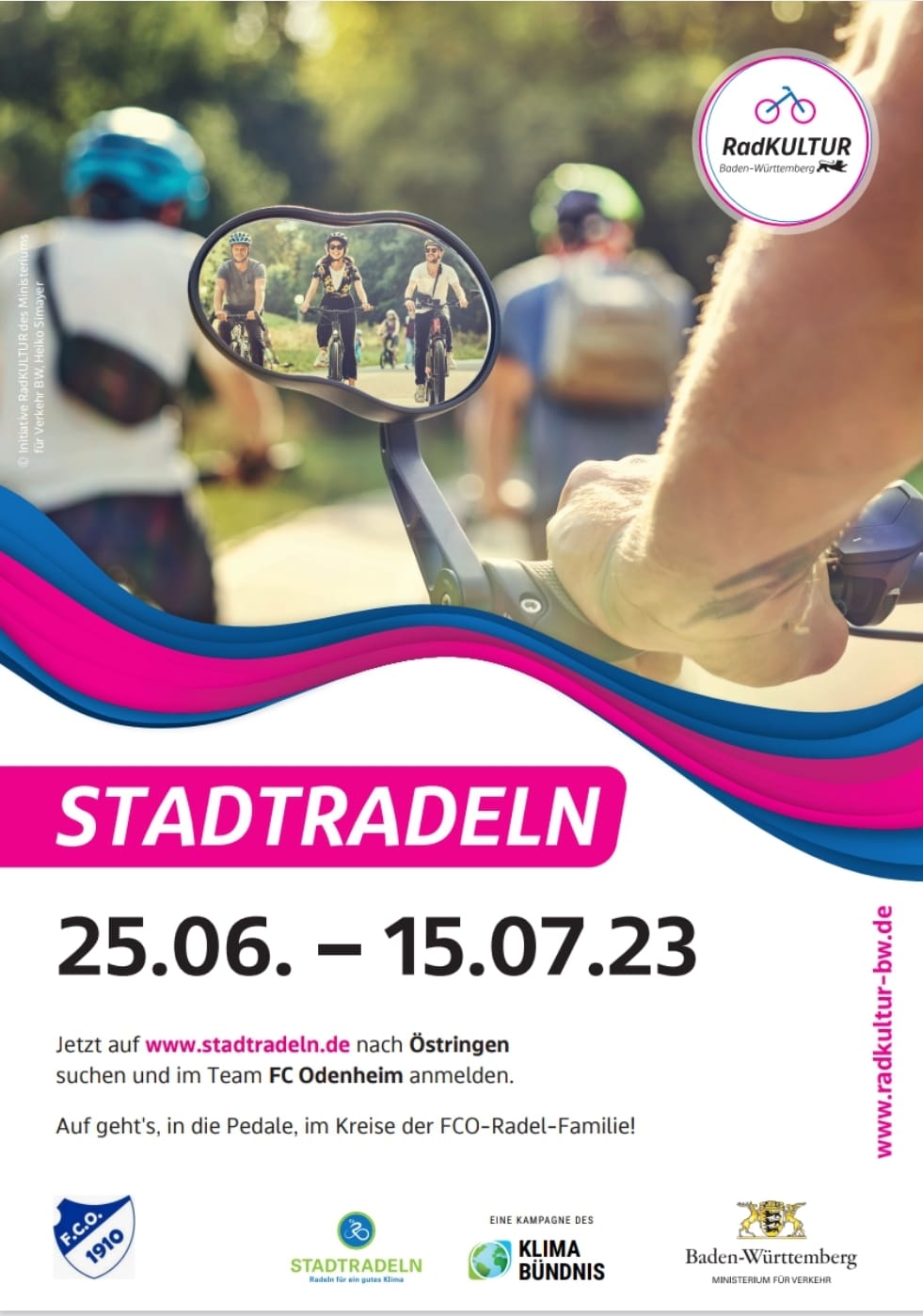 Am 15. Juli endete der dreiwöchige Zeitraum des diesjährigen Stadtradel-Wettbewerbs, an dem die Stadt Östringen zum 3. Mal teilgenommen hat (insgesamt 98.736 km, zum Vergleich in 2022: 88.425 km, 2021: 64.825 km) und wir diese wieder mit einer FC Odenheim-Gruppe unterstützt haben.