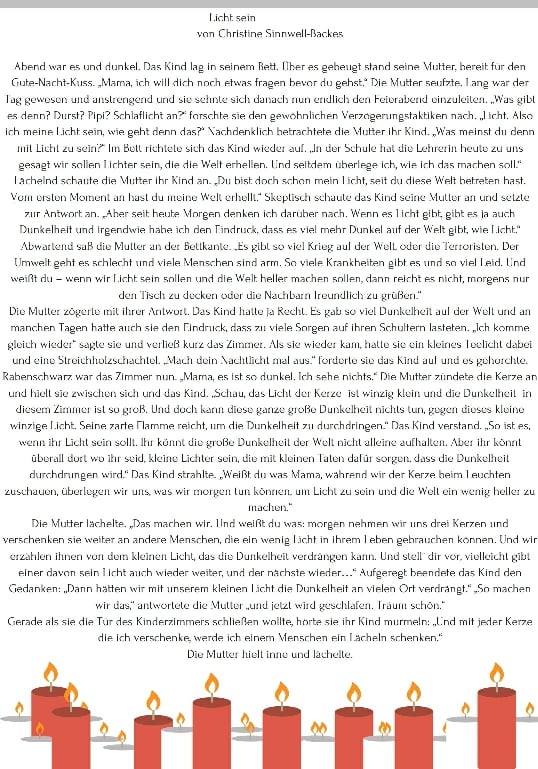 In im Eingangsbereich platzierten Tüten findet ihr eine Adventsgeschichte, ein Teelicht und einen Schoko-Nikolaus zum Mitnehmen. Reizt dies nicht dazu, das Adventsfenster noch in den abendlichen Spaziergang mit einzubeziehen?
