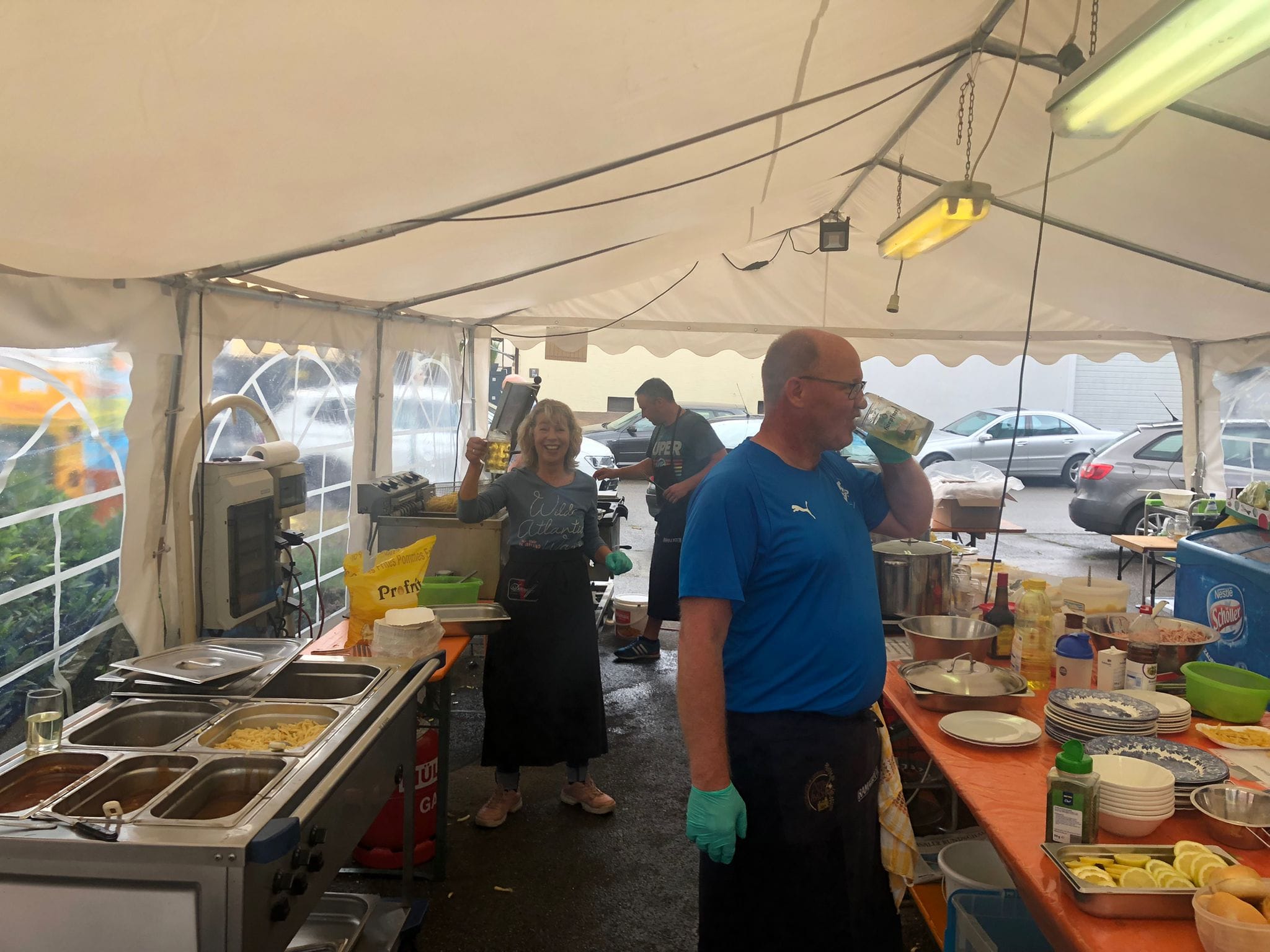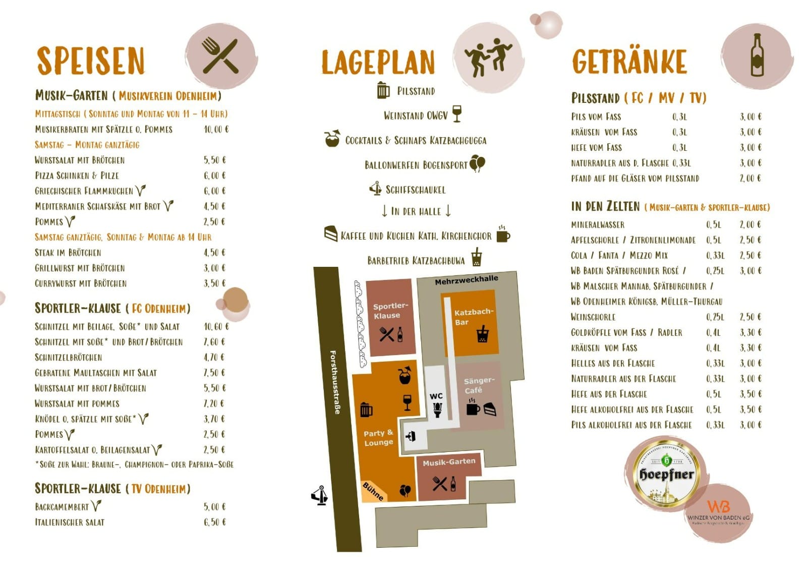 - bei allen Festlieferanten wie der Bäckerei Karch, der Metzgerei Fessler, der Fa. Lingenfelser und Pfersching Vertriebs GmbH Flehingen, Beckers Getränkemarkt Kraichtal-Unteröwisheim, der Fa Hoepfner, der Fa. Schindler Party- und Zeltverleih Forst,