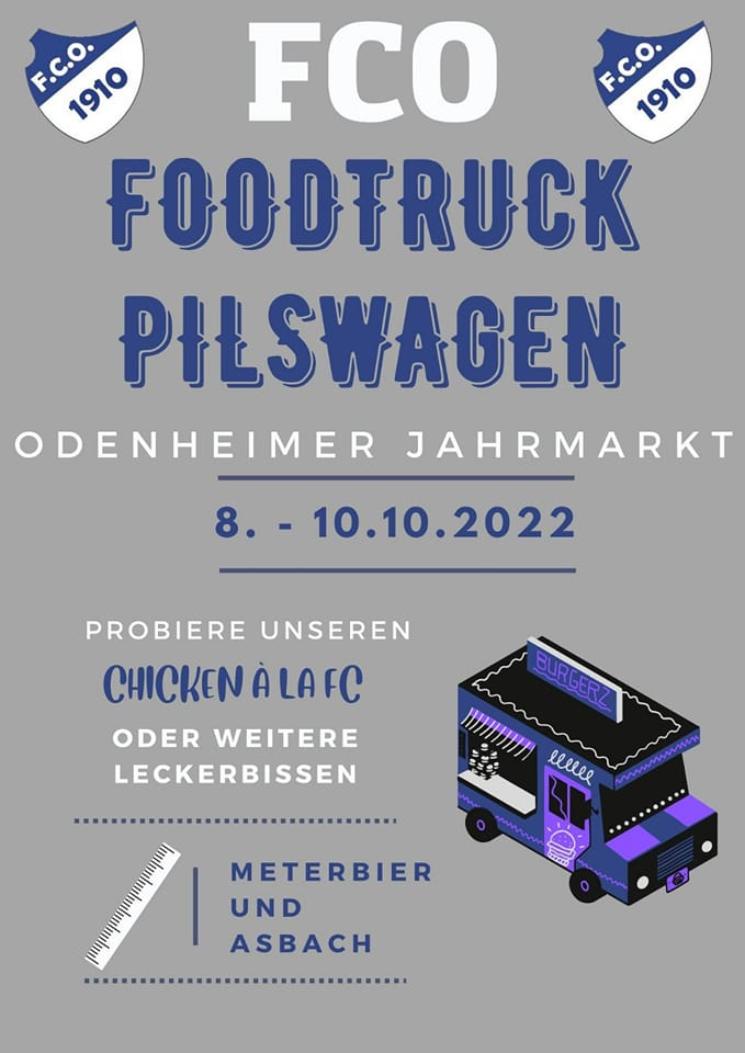 Neben dem beliebten Pilsstand hat unser FCO in diesem Jahr auch erstmals am Jahrmarkt Speisen angeboten. Am vereinseigenen Food-Truck konnten wir unsere Gäste mit Chicken-Burger 'a la FC, Jahrmarkts-Grillwurst, Currywurst, Steak, Pommes und Calamaris kulinarisch verwöhnen, die diese dann auch im angrenzenden Festzelt genießen konnten. Gerade auch unser Essensangebot wurde sehr gut angenommen, wir freuen uns über die tolle Resonanz.