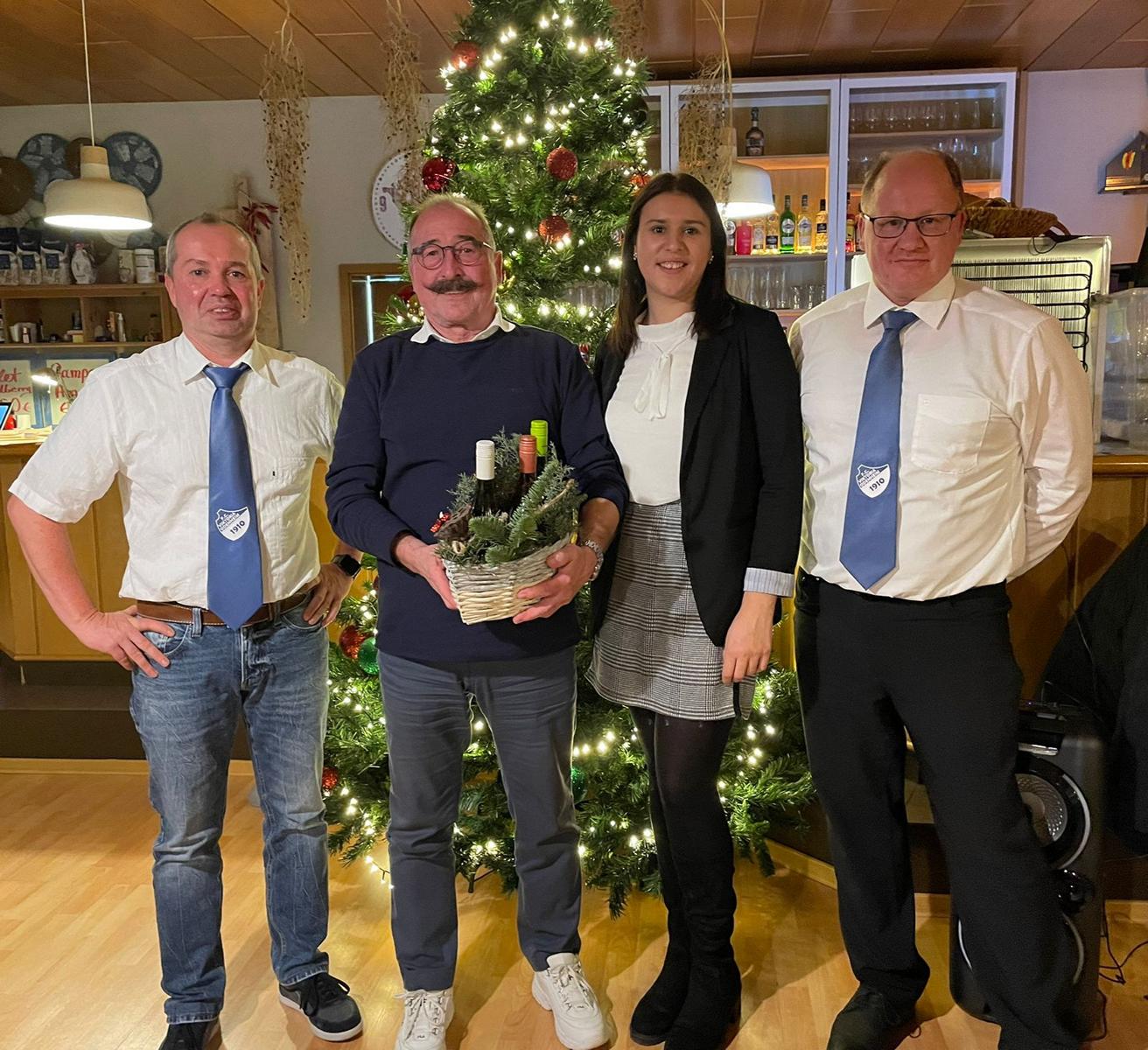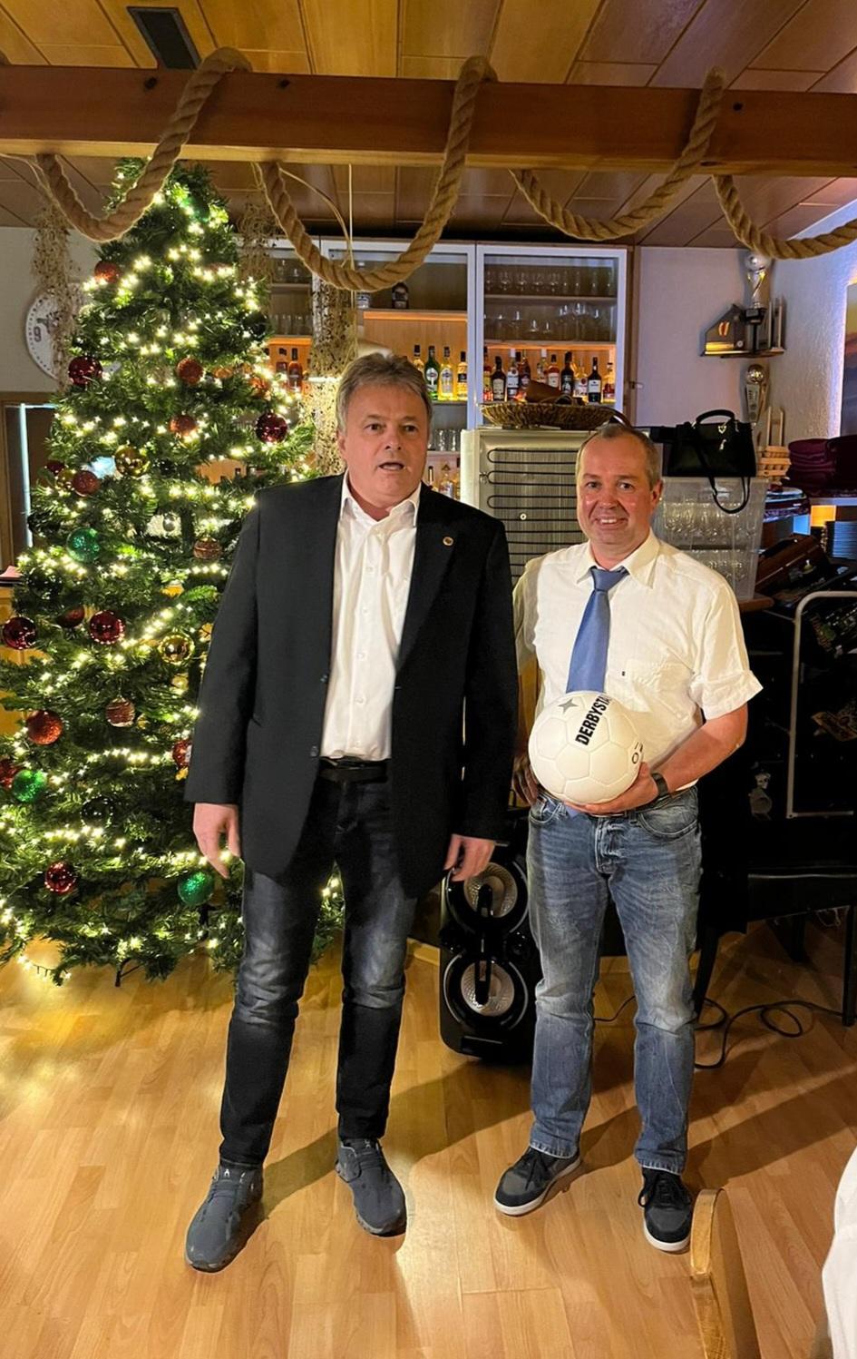 Es folgten die Ehrungen des Badischen Fußballverbandes. Der Vorsitzende des Fußballkreises Ralf Longerich überbrachte zusammen mit Uwe Schwabenland hoffnungsvolle Fußballgrüße, gratulierte nochmals zum 110jährigen Vereinsjubiläum, bedankte sich dafür, dass im August das Kreisligaeröffnungsspiel in Odenheim ausgetragen werden konnte und übergab eine Ballspende. Auch für seine Worte „Wir kommen immer sehr gerne nach Odna!“ gab es verdienten Applaus. Mit der Bronzenen Verbandsehrennadel zeichnete Longerich die FCO´ler Herbert Staudacker, Hakan Yigit, Marcus Schäfer und Torsten Witte aus. Auch für die mit der Silbernen Verbandsehrennadel geehrten Rüdiger Frenzl (bis vor Kurzem langjähriger AH-Vorsitzender) und Eric Wagner hatte Longerich die passenden ehrenden Worte parat.