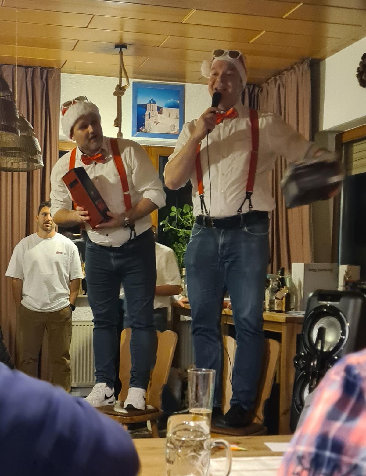 Anschließend schlupften Marco Witte und Thomas Vogel in die Rolle der Auktionatoren und boten bei der beliebten Versteigerung in bester Conférencier-Manier Sachpreise und vieles mehr an. Mit Humor und Schmäh sowie dem Blick für die Vereinskasse, brachten sie diverse Spirituosen, einen Tresor, Waren- bzw. Reisegutscheine und vieles mehr an die Frau oder den Mann. So manches Mal kam es sogar zu familieninternen Überbietungen. Hauptversteigerungsobjekt war ein Trikot des FC St. Pauli. Bekanntlich war dessen Profi David Otto vor Kurzem bei uns vor Ort und wir freuen uns über seine Zusage, das Trikot in der gewünschten Größe noch von allen Spielern unterzeichnen zu lassen. Torsten Witte ersteigerte das seltene Exemplar und darf es bald sein Eigen nennen.