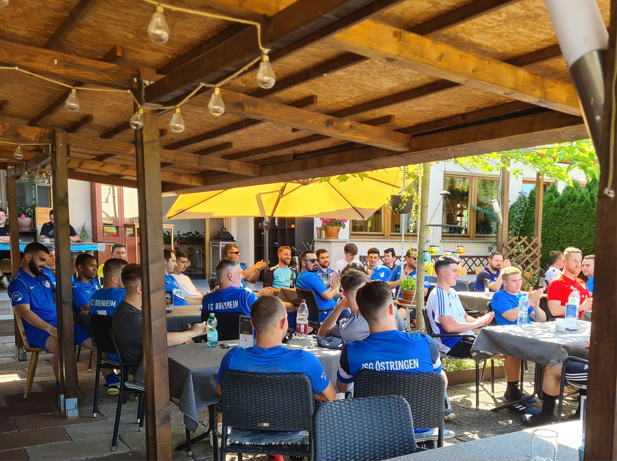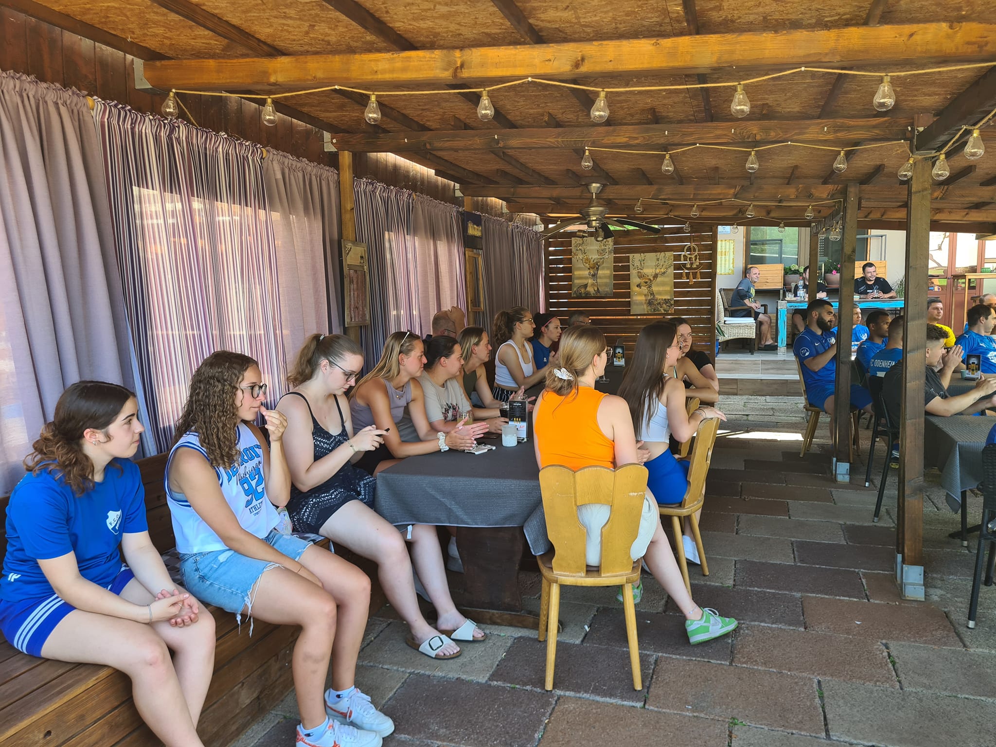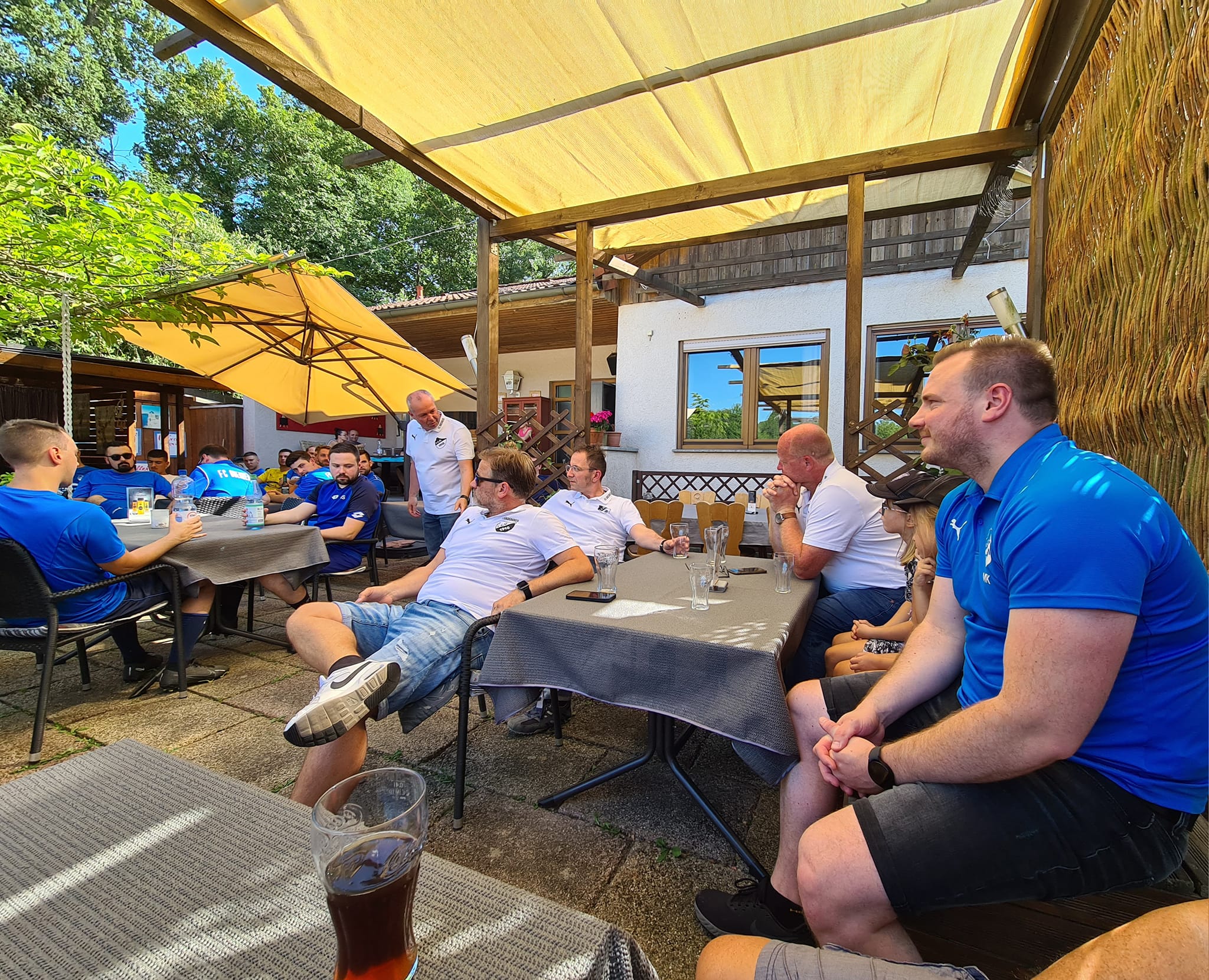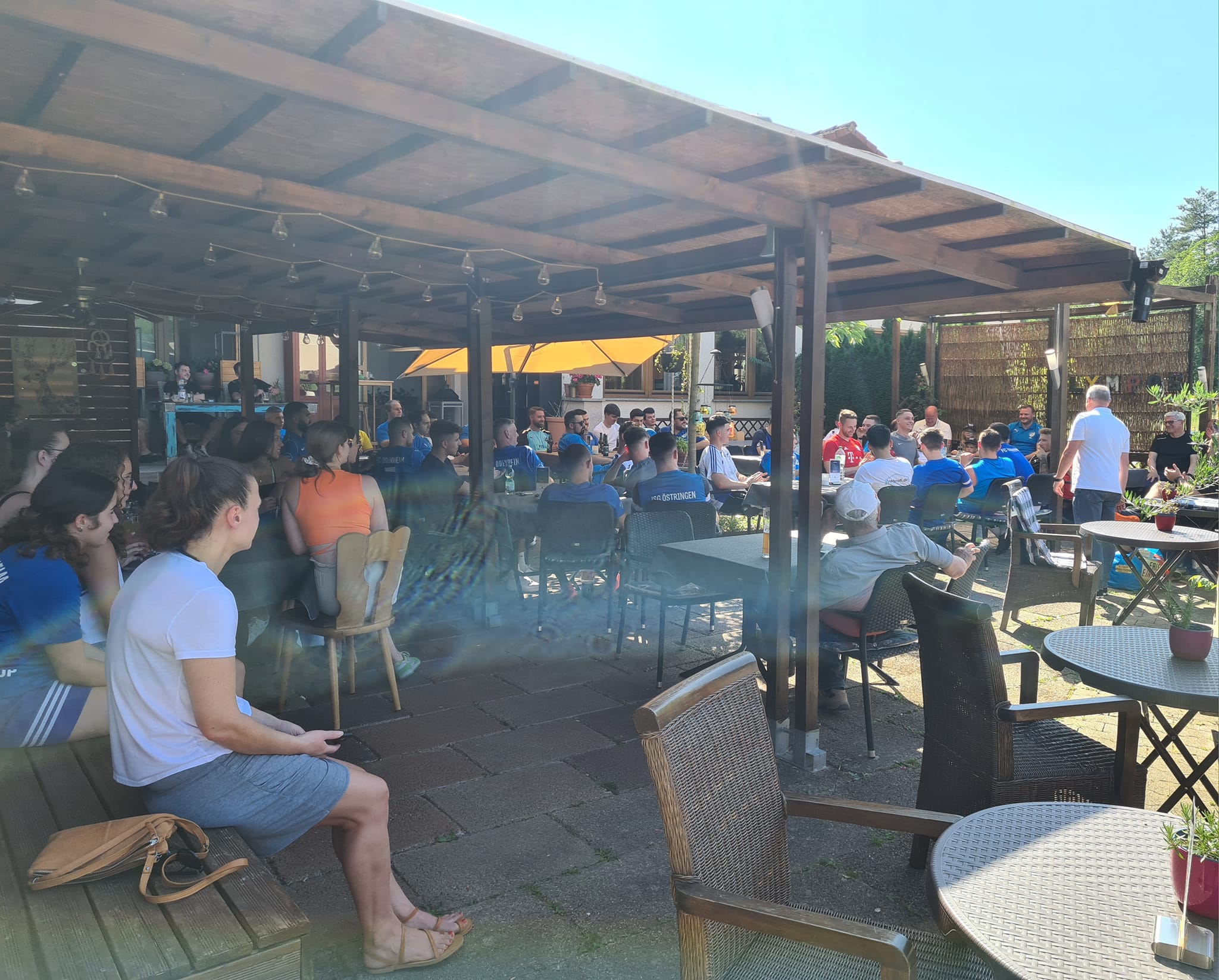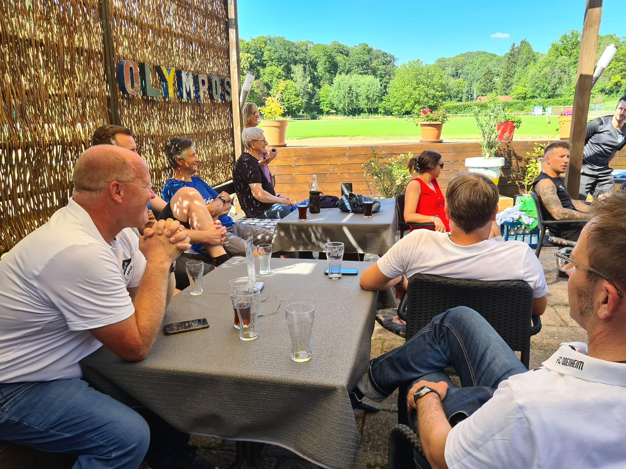 Im Anschluss saßen einige noch gemütlich im stylischen Biergarten des Clubhausrestaurants Olympos zusammen und gönnten sich bei heißen Temperaturen isotonische Getränke und leckeres Essen.
