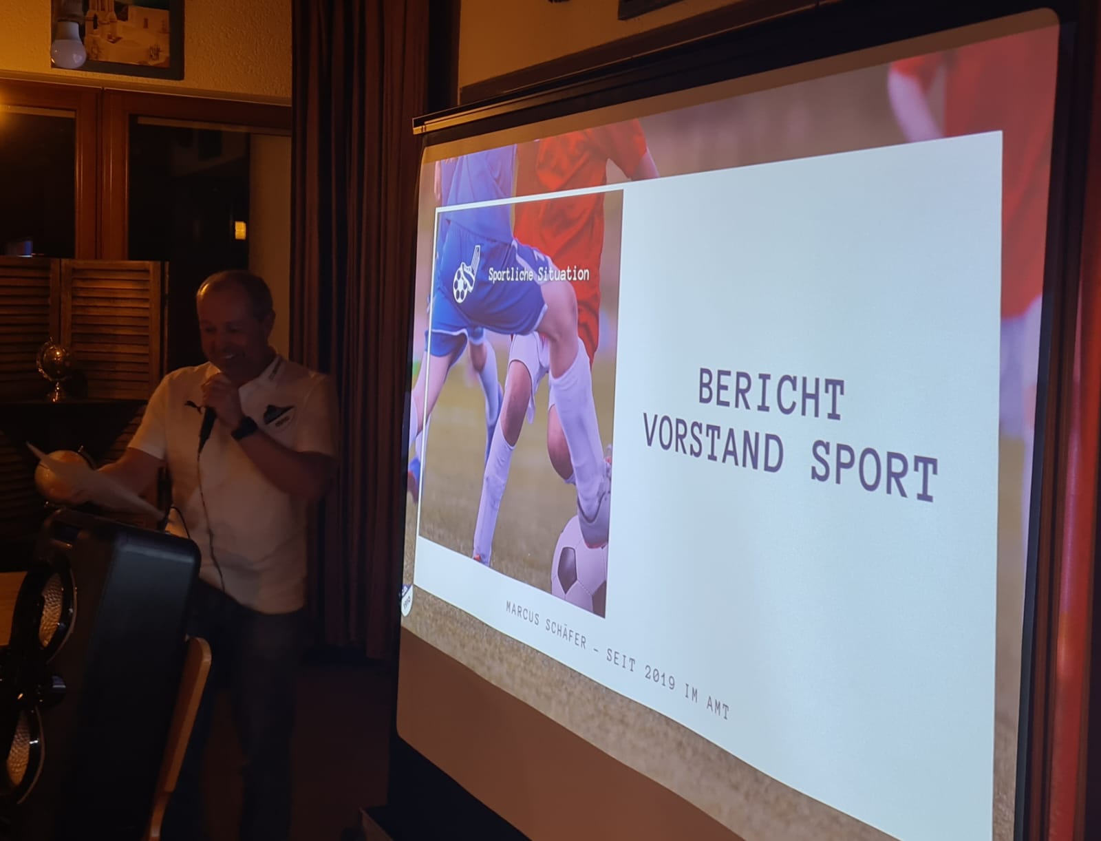 Es folgte der Bericht Sport durch das hierfür zuständige Vorstandsmitglied Marcus Schäfer, der auf die vergangenen und aktuellen Runden unserer beiden Herrenteams und der Damenmannschaft einging, nochmals die Namen der Neuzugänge nannte und den eingeleiteten Umbruch bei der 1. Herrenmannschaft veranschaulichte. Für die AH kam dabei auch AH-Vorstand Uwe Zorn zu Wort.
