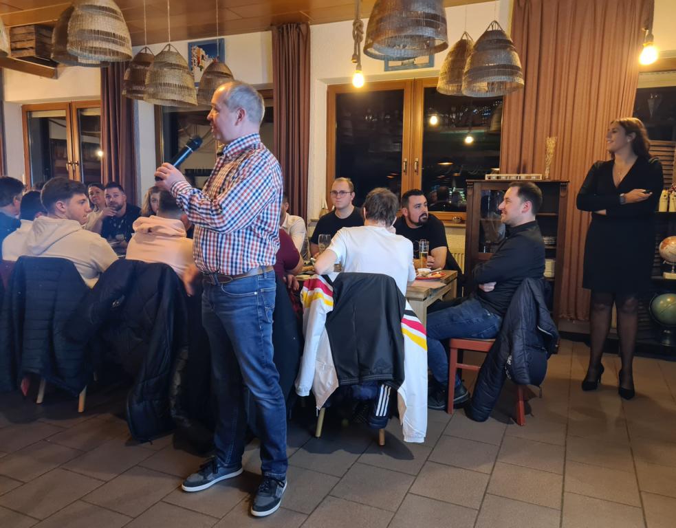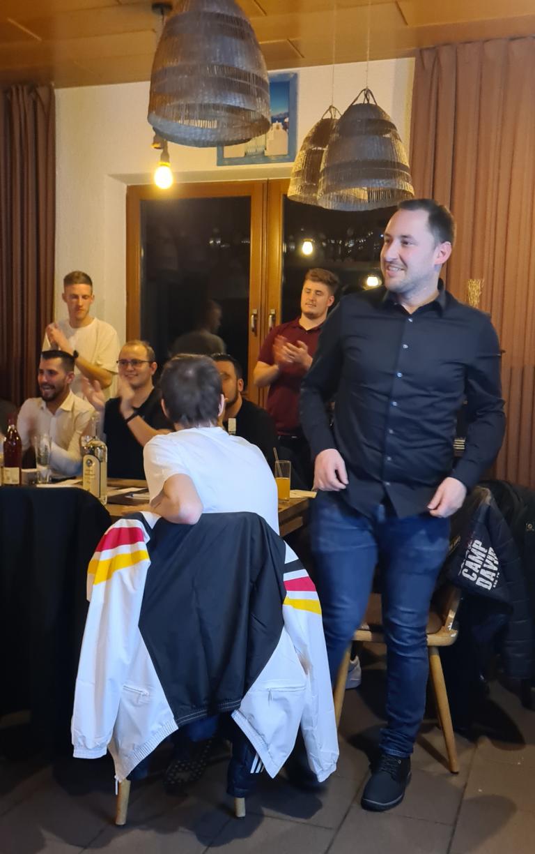 Vielen Dank an unsere Teams, die sich bei ihren Trainern und sonstigen Mitstreitern mit Präsenten bedankten. Jan Bayer fand mit Unterstützung von Benedikt Oberle hierzu auch noch passende Worte, im Besonderen für Mannschaftskamerad und Freund Christian „Bale“ Becker, der seine kürzliche OP zur großen Freude aller gut überstanden hat und zur nächsten Saison auch wieder in den Spielerkreis der „Zweiten“ zurückkehren wird. Alles Gute Bale, #comebackstronger!
