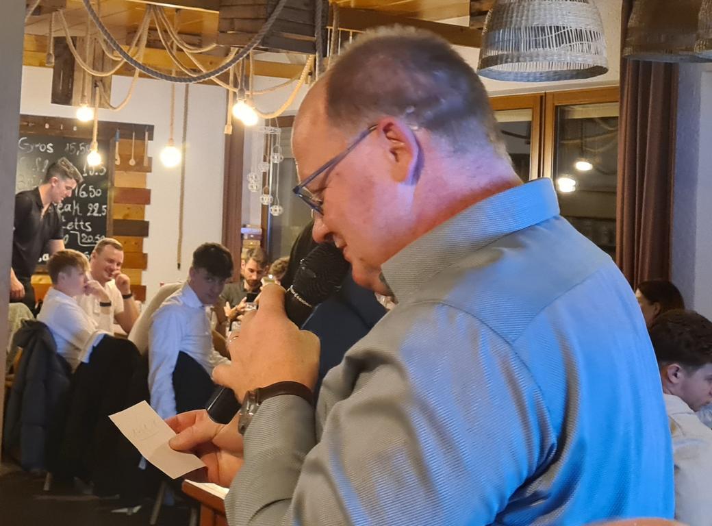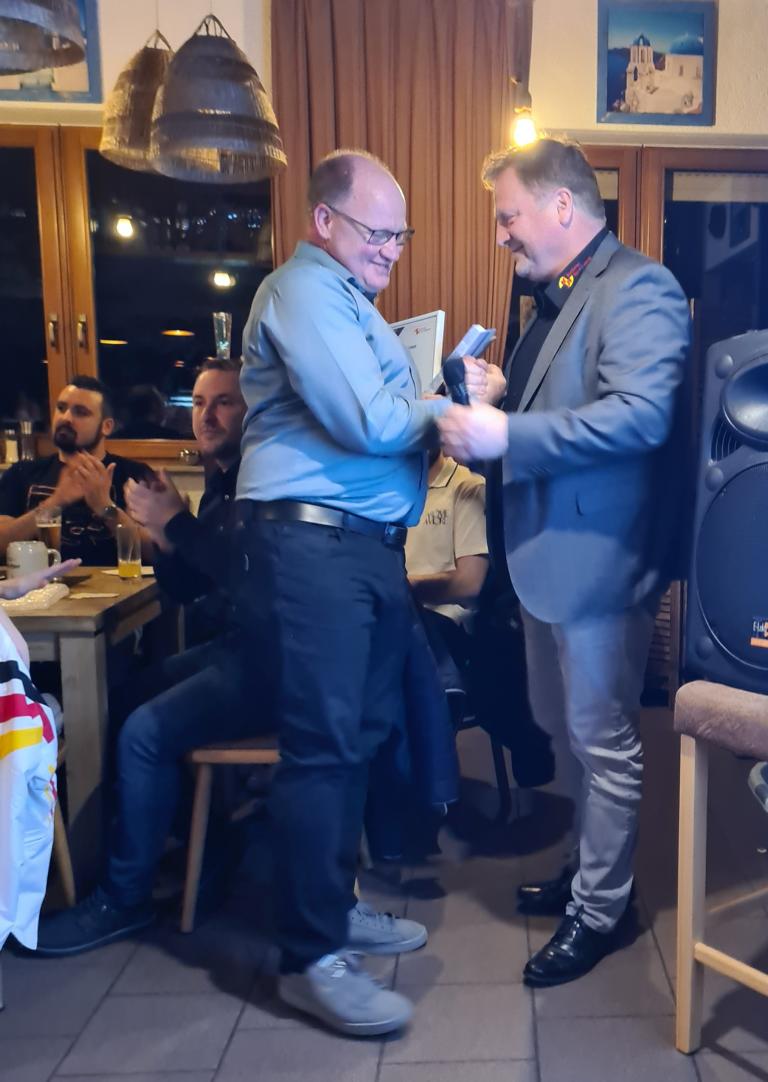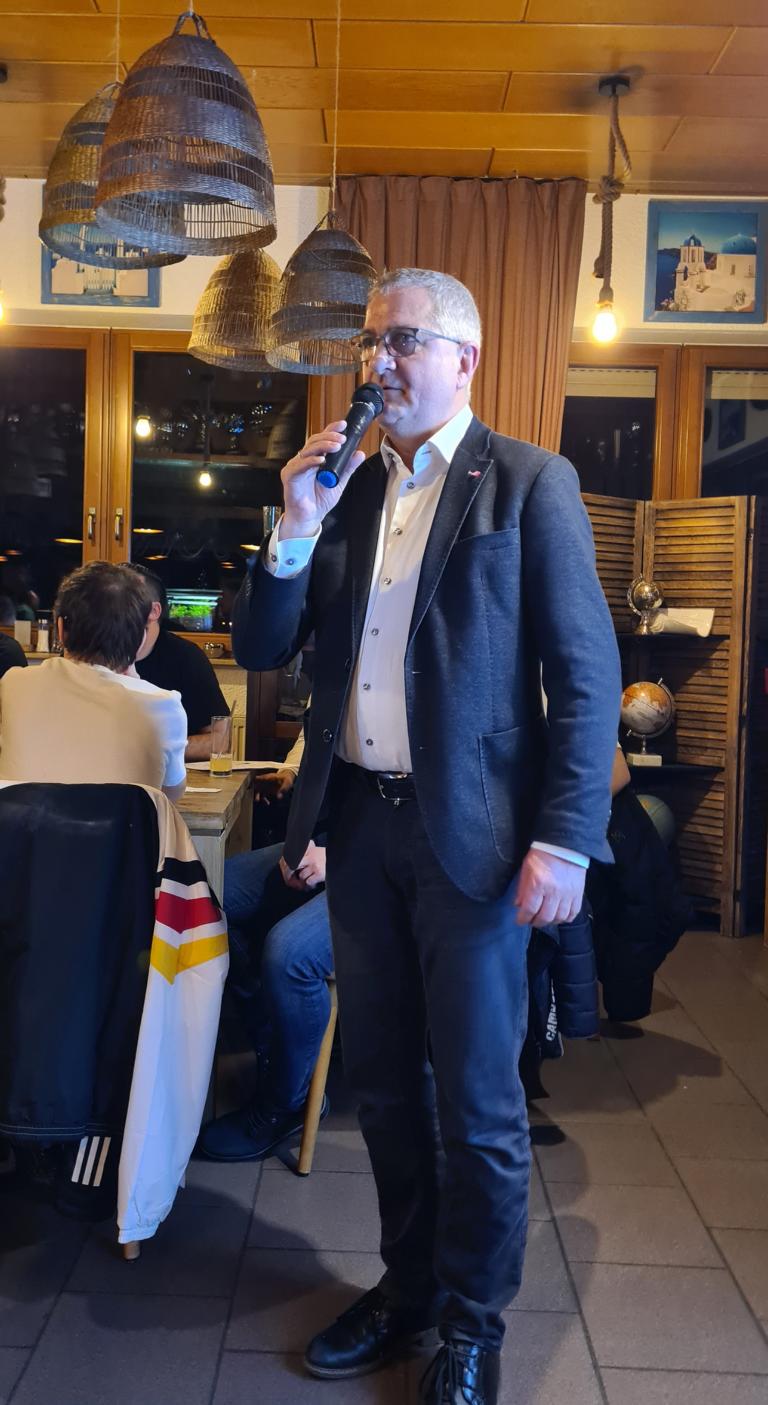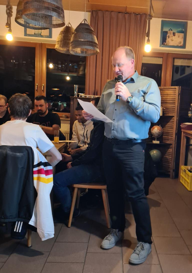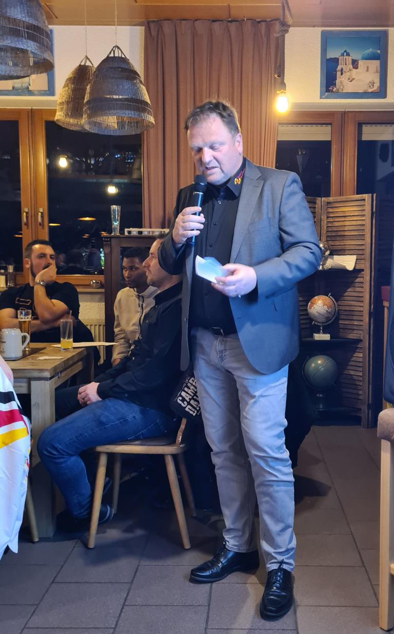 Anschließend überbrachte Ortsvorsteher Gerd Rinck Grüße der Orts- und Stadtverwaltung sowie von Bürgermeister Felix Geider. Er zeigte sich vom Vereinsleben beim FCO und vor allem auch der heutigen Veranstaltung sehr angetan. In seinen Dank an die gesamte FCO-Familie schloss er ausdrücklich auch Dankesworte für Viola ein, die sich nicht nur bei unserem FCO, sondern auch vereinsübergreifend sehr für Odenheim engagiert. Rinck beendete seine Rede damit, dass man zurecht auf viele Leistungsträger/innen in unserem Ort sehr stolz sein darf, nicht zuletzt auch auf unseren FCO. Vielen Dank Gerd für die tollen Worte!