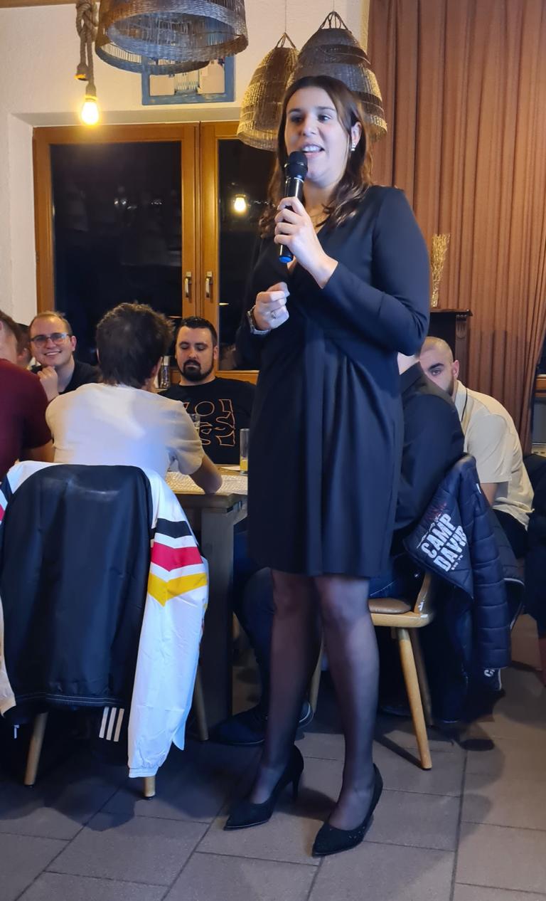 In der Folge leitete unsere Vorständin Verwaltung/Finanzen Viola Spitzer durchs Programm. Dieses begann sie mit einer eindrucksvollen Weihnachtsansprache, die den aktuellen Zeitgeist traf, auch auf das nationale und internationale gesellschaftliche und politische Leben einging und nicht zuletzt auch das Vereinsleben und den sportlichen Werdegang unserer Mannschaften umfasste.