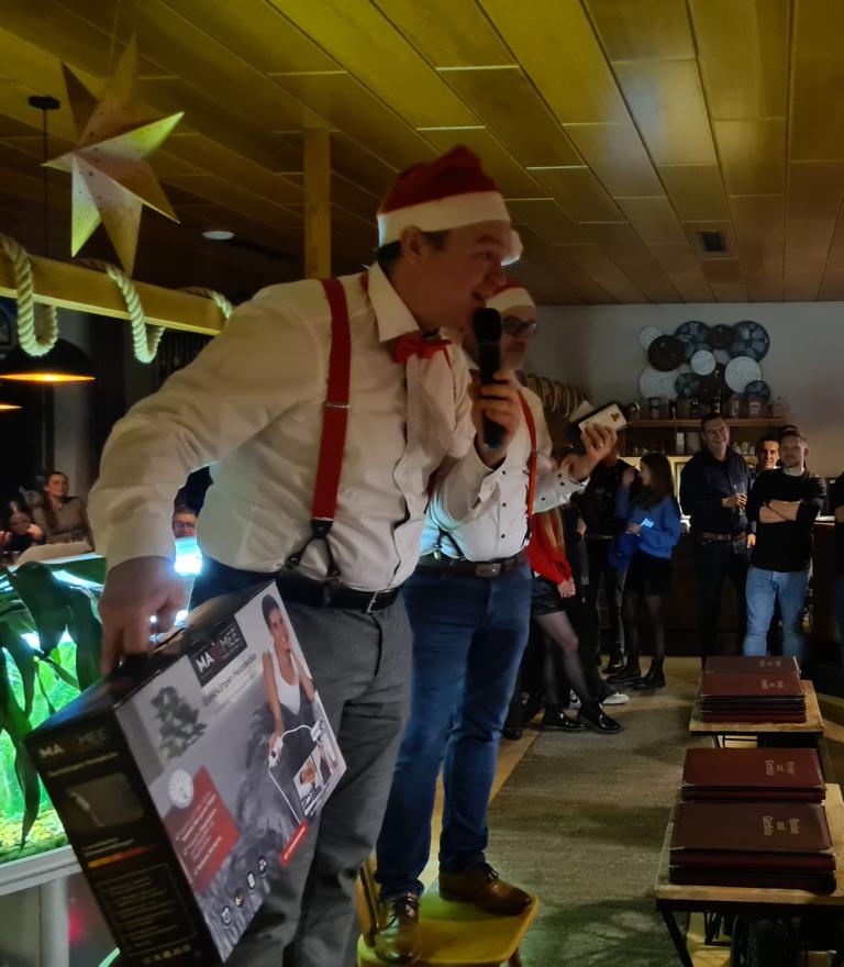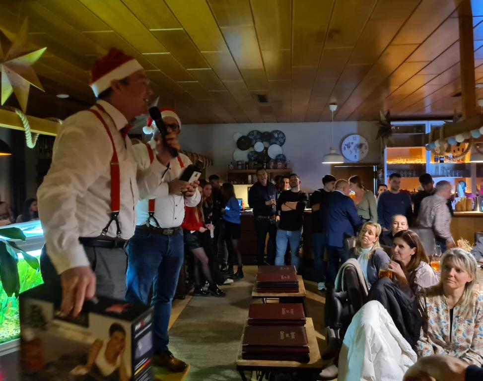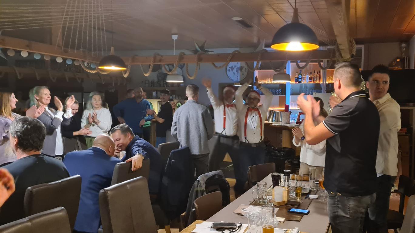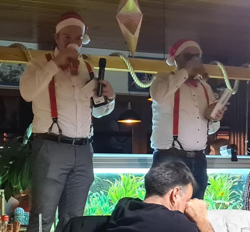 Mit großer Freude hatte man bereits den nächsten Programmpunkt erwartet, die Versteigerung diverser Preise, die unserem FCO von den Sponsoren zur Verfügung gestellt wurden. Vielen Dank dafür! Beliebt ist die Versteigerung aber nicht nur wegen den Preisen, sondern vor allem auch wegen den beiden Conférenciers Marco Witte und Thomas Vogel, die von Viola als „Weihnachtsengel“ angekündigt wurden, in weihnachtlichem Outfit unter großem Applaus die Clubhausgaststätte betraten und u. a. mit unseren Herrenteams zur La-Ola ansetzten. Zahlreiche Preise wurden an die Frau, an den Mann gebracht und Marco und Thomas sorgten vor und bei jedem Versteigerungspunkt für gleich mehrere Lacher. Einfach bärenstark die Sprüche der beiden! Auch diese sorgten dafür, dass es wohl zu einer Rekordeinnahmesumme gekommen ist. Exemplarisch ersteigerten gleich zwei Kult-FCO´ler je ein 30-Liter-Bier-Caddy für je 130 Euro. Passende Sprüche wie „So günstig kommt man nicht mehr an Bier!“ hatten den Preis auf Rekordhöhe angehoben. Da wird der leckere Gerstensaft aber bestimmt ganz besonders schmecken.