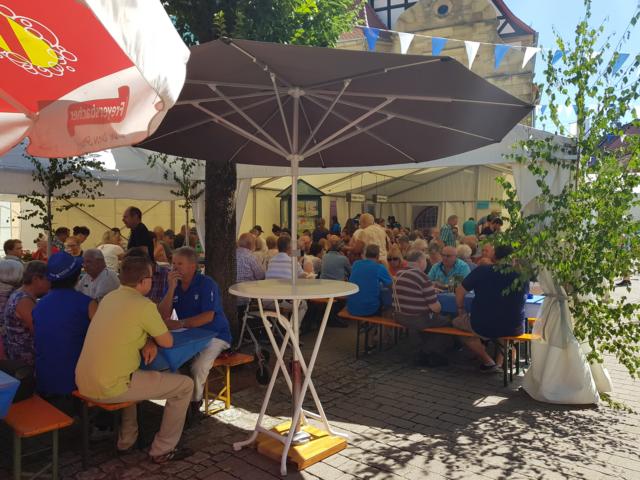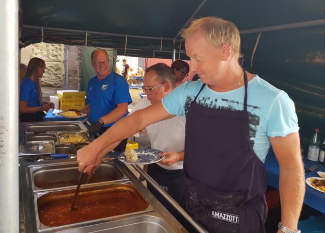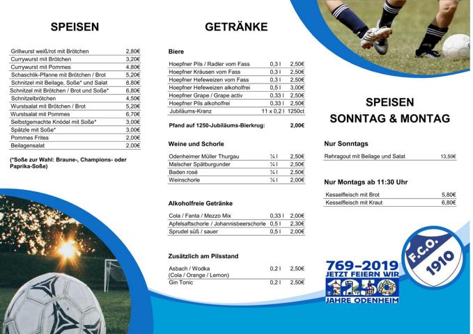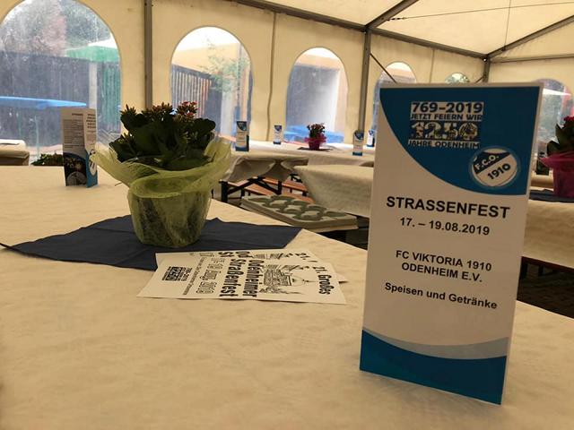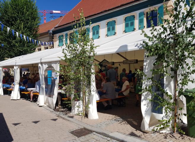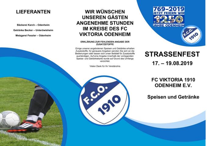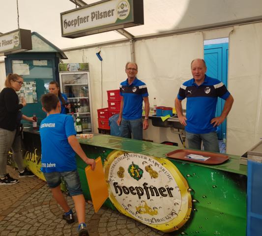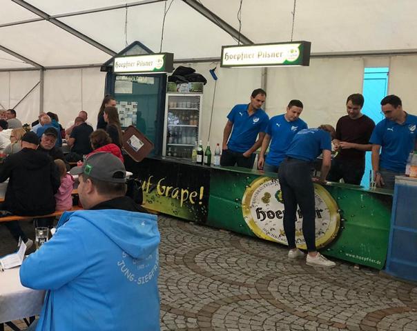 Mit dabei natürlich auch unser FC Odenheim, der seinen Straßenfeststandort links vom Rathaus hatte und zahlreiche Gäste begrüßen konnte, denen man Rehragout, Schaschlik-Pfanne, Kesselfleisch und viele weitere Spezialitäten servierte. Dazu gab´s leckere Weine, alkoholfreie Getränke und am Pilsstand süffige Hoepfner-Biere sowie am FCO-Schnapsladen diverse Spirituosen und „Verdauerli“.