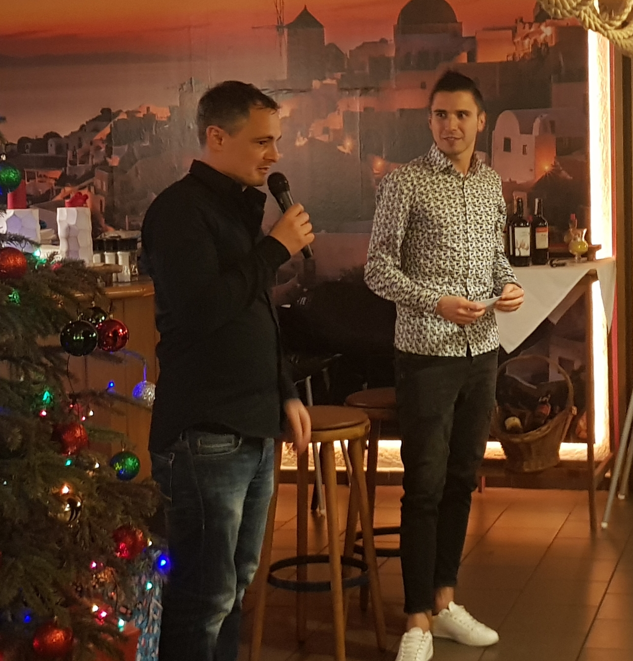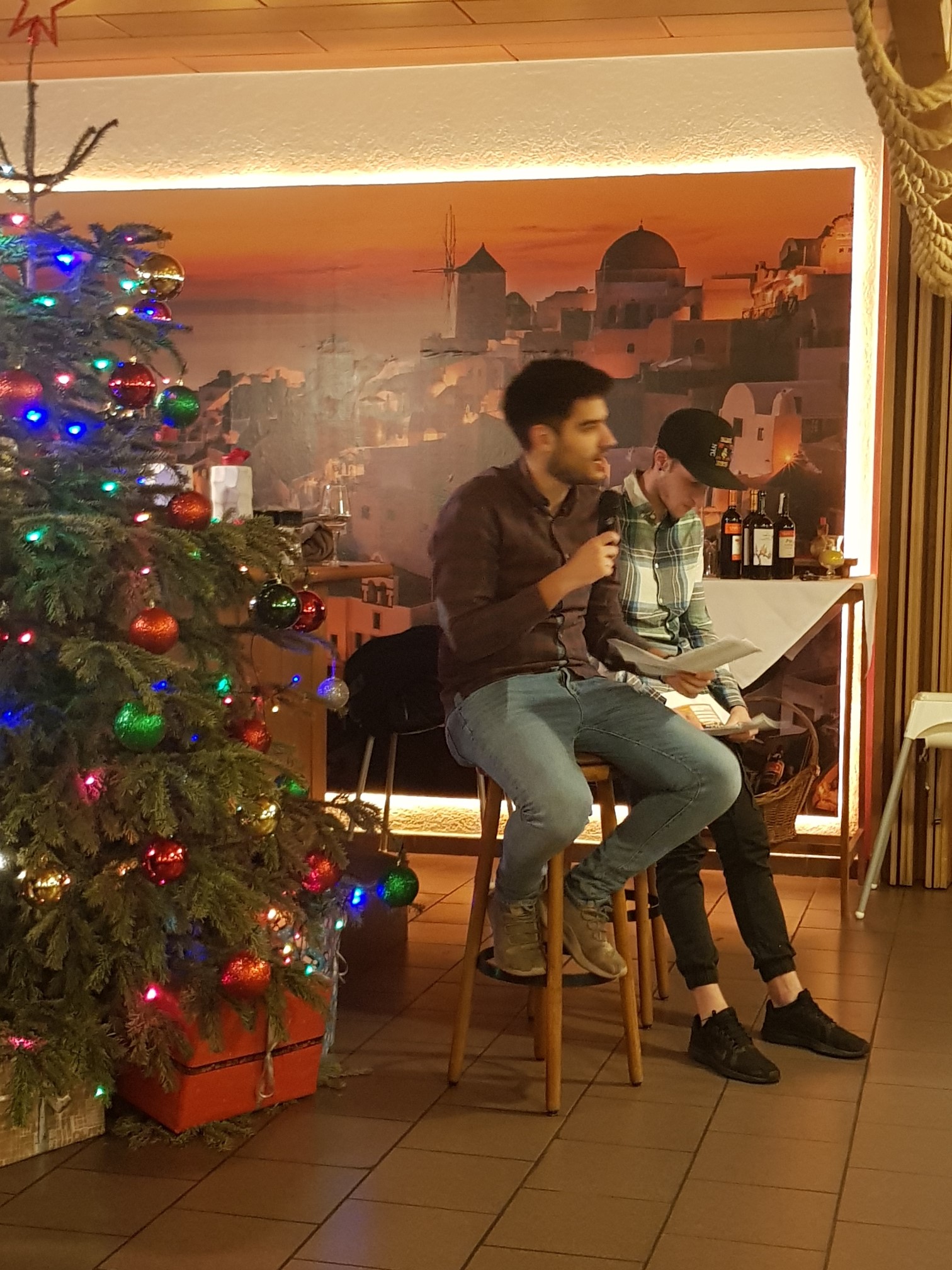 Abschließender Höhepunkt der Weihnachtsfeier war die sehr beliebte Versteigerung. Marcus Schäfer und Thomas Vogel schlupften in die Rolle von Auktionatoren und boten den Gästen verschiedenste Sachpreise und Prämien in bester Conférencier-Manier an. Äußerst humorvoll und doch mit bestem Blick für die Vereinskasse brachten sie Reise- und Warengutscheine, eine Bosch-Schleifex, diverse Spirituosen, ein selbstkühlendes 20-Kilo-Bierfass und vieles mehr an die Frau und den Mann. Die Aktiven bedanken sich bei August Kessler, Torsten Witte und Robert Laub für die Spende der von diesen ersteigerten Bierwaren, die bei anstehenden Kabinenfesten oder bereits bei der am kommenden Samstag stattfindenden FCO-Apres-Ski-Party für feuchte Kehlten sorgen werden. Nach Beendigung des offiziellen Programms wurden auch noch zahlreiche Tombola-Preise ausgegeben, für die man zuvor bei den durch die Reihen gehenden Jugendspielern Lose erwerben konnte. Wir danken den örtlichen Firmen und im Zuge des „Weihnachtssammeln der Aktiven“ den Vereinsmitgliedern für die tollen Spenden, die die Versteigerung und Tombola erst möglich machen.