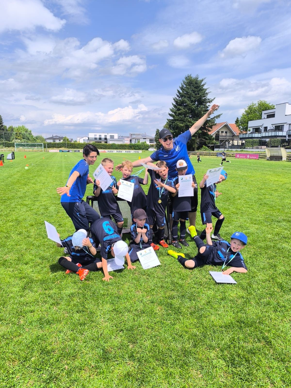 Auch die Nachwuchskicker der F2 (Jahrgang 2017) überzeugten mit tollem Einsatz und spielerischem Können. Gegen Flehingen 2 und Karlsdorf 2 erkämpften sie sich spannende Unentschieden, während sie in den Spielen gegen Flehingen3 und Kürnbach 2 mit deutlichen Siegen glänzten. Nur im letzten Spiel schwanden die Kräfte ein wenig – vielleicht nicht ganz zufällig nach der köstlichen Vesperpause mit Pommes, heißer Wurst und Eis. Die F2 konnte in diesem Turnier eindrucksvoll zeigen, wie stark sie sich als Team und in ihrer spielerischen Entwicklung weiterentwickelt hat.