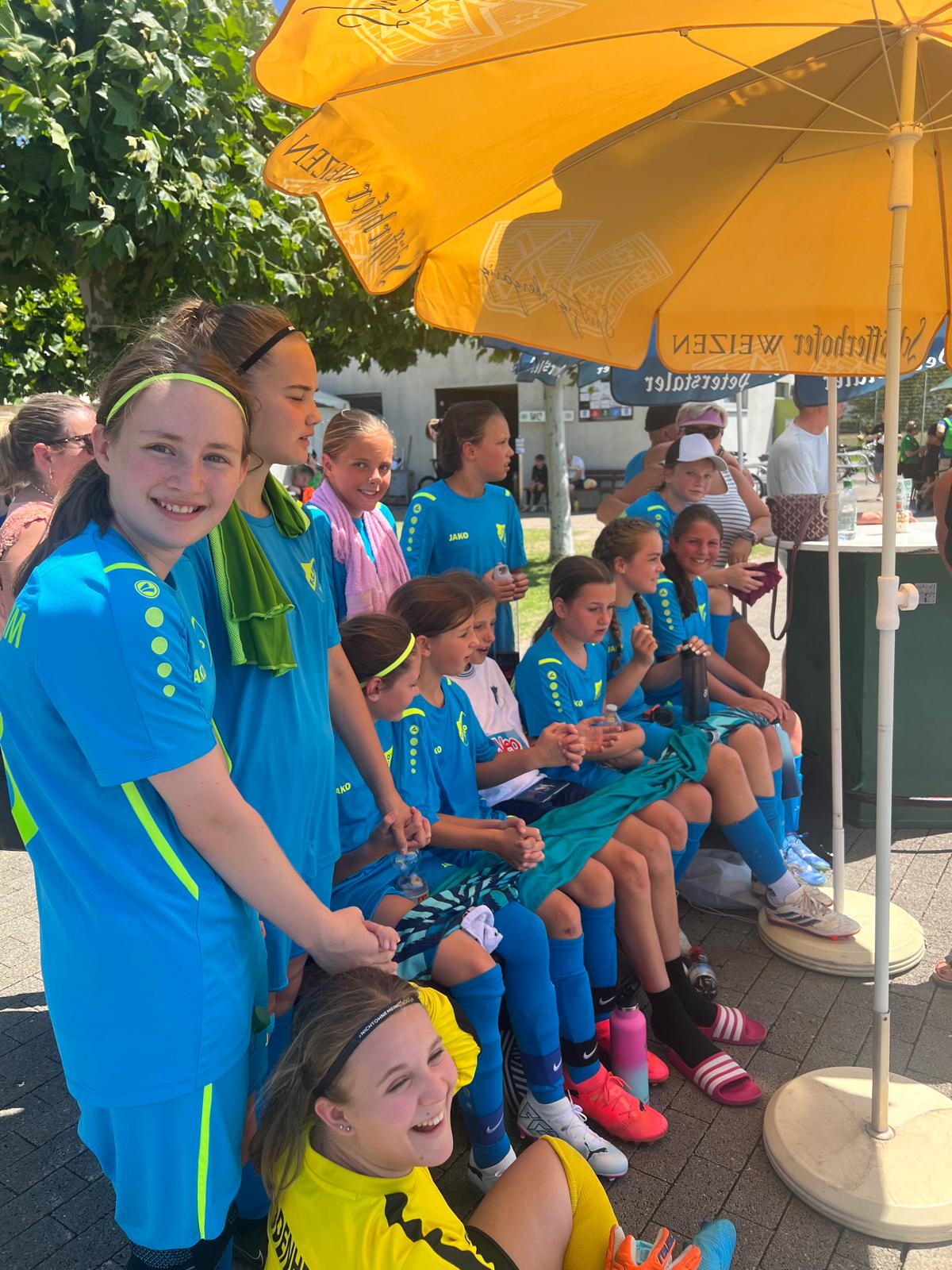Die D-Juniorinnen nahmen am 13.07.2025 am Physio West Sommercup in Wiesloch teil. Bei hochsommerlichen Termperaturen traf man auf dem dortigen Kunstrasen auf folgende Gegner: